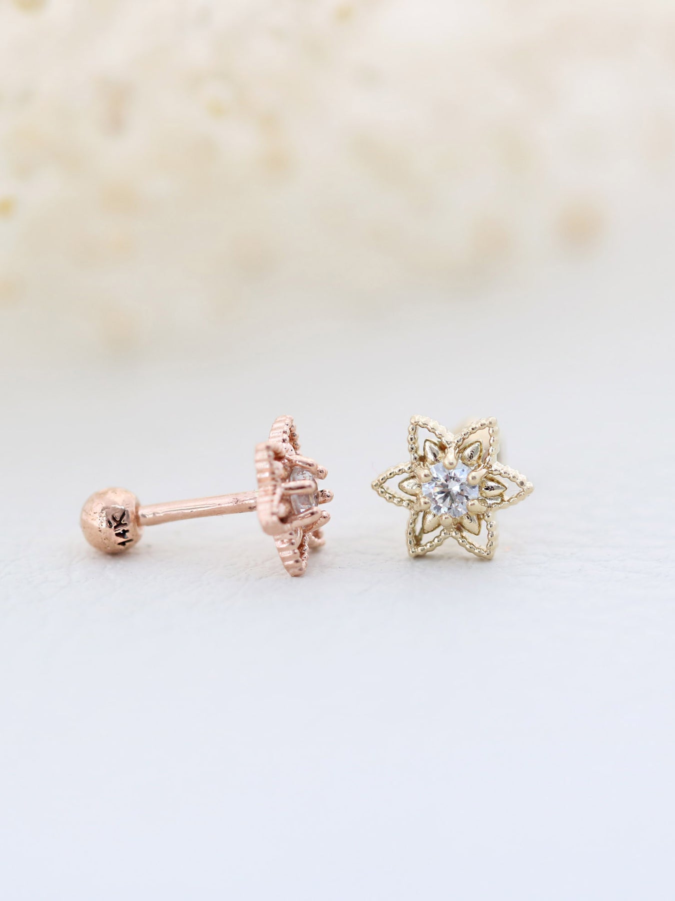 14K Gold Bling Flower Cartilage Earring 18G16G