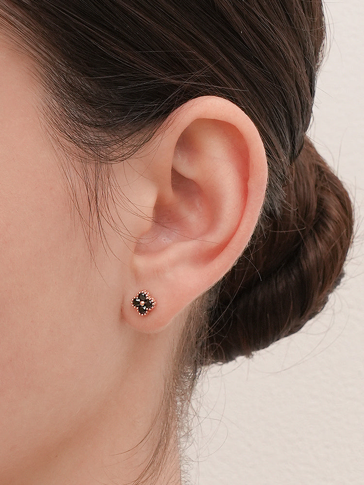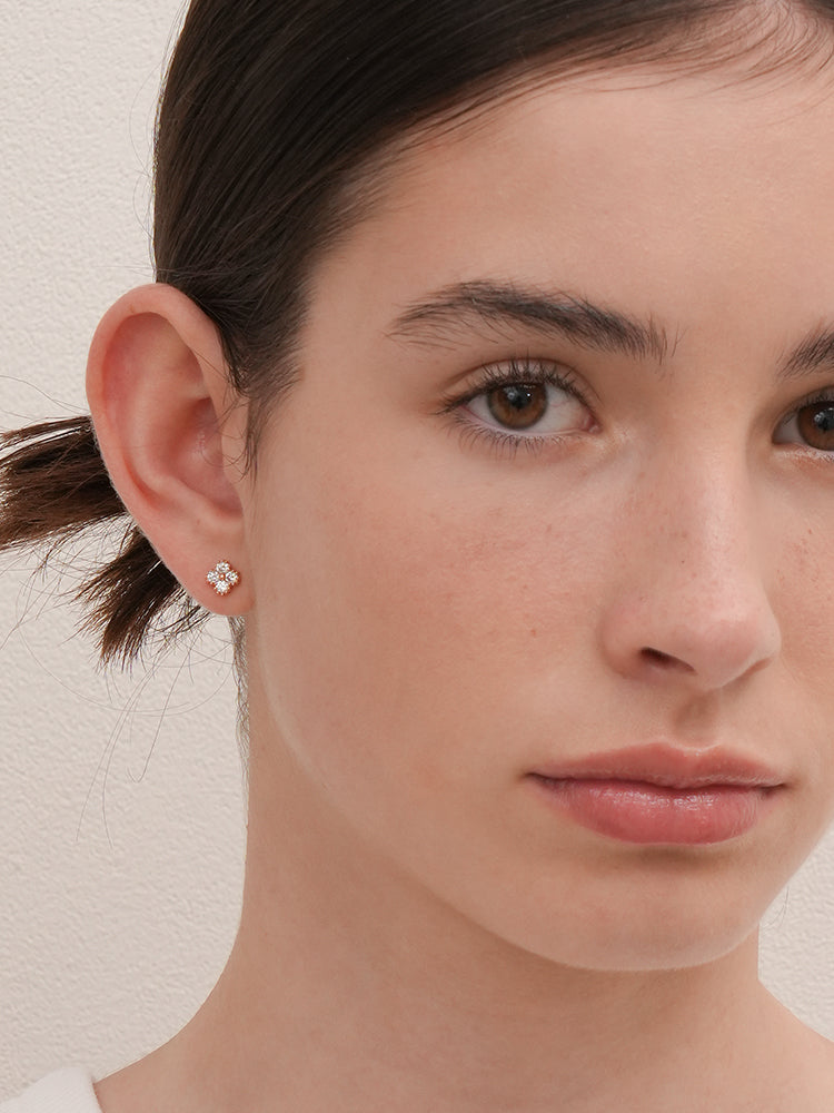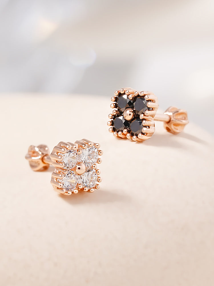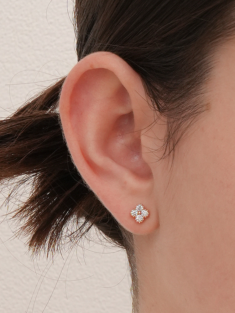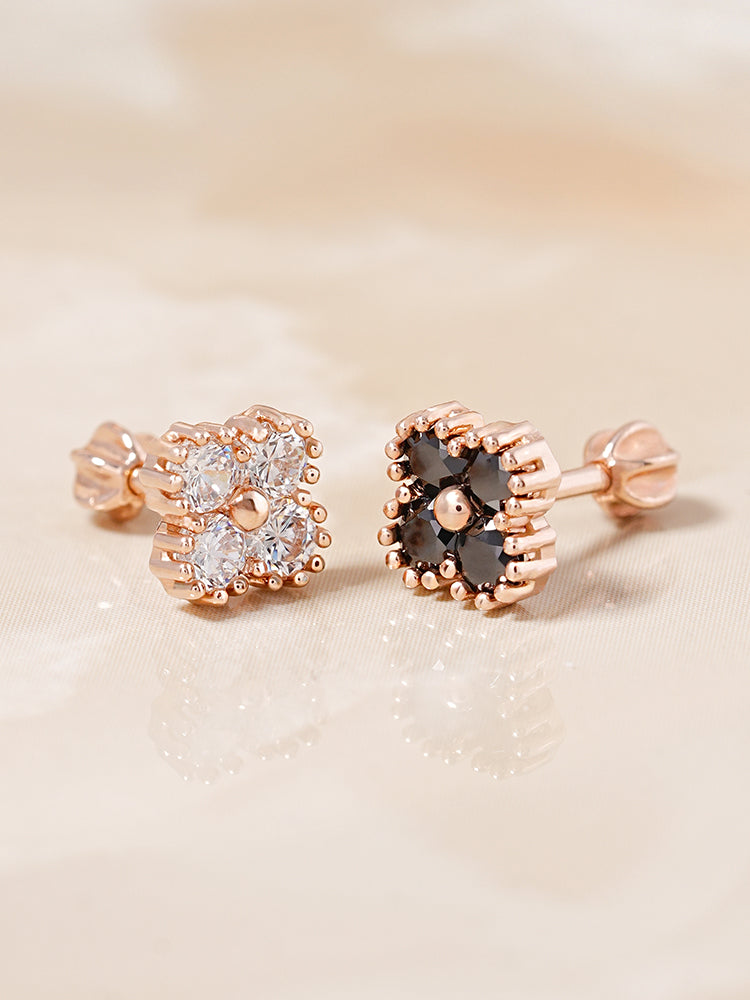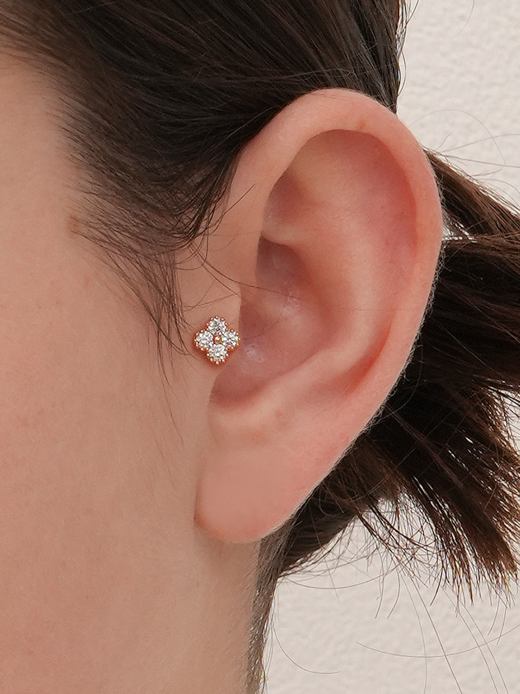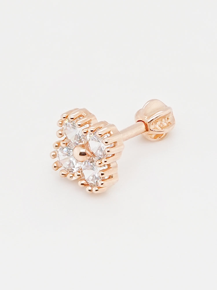 14K Solid Gold Midnight Clover Bloom Cartilage Earring 18G16G