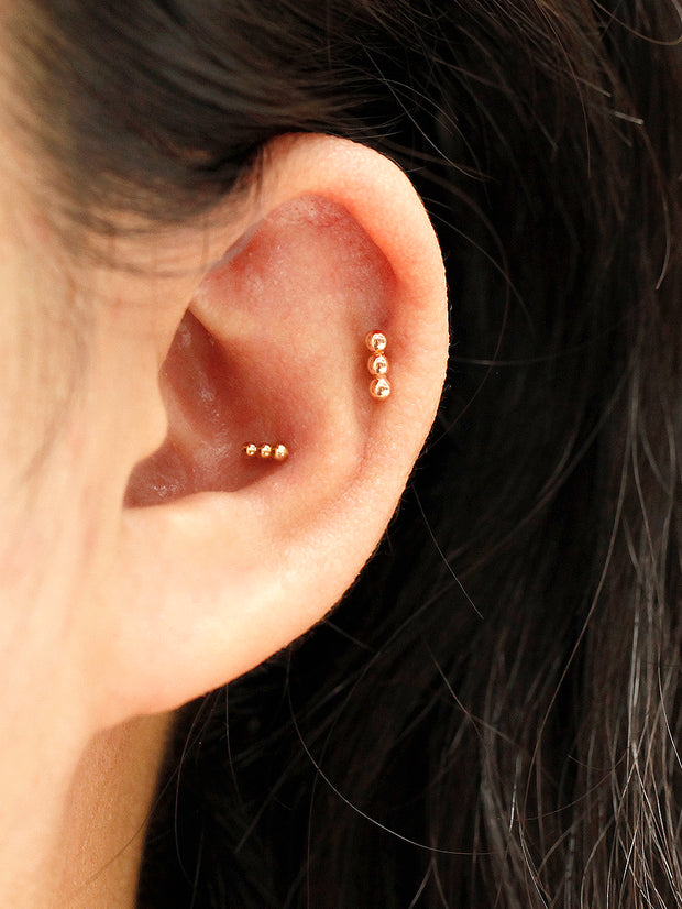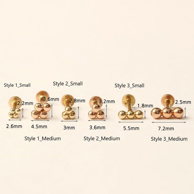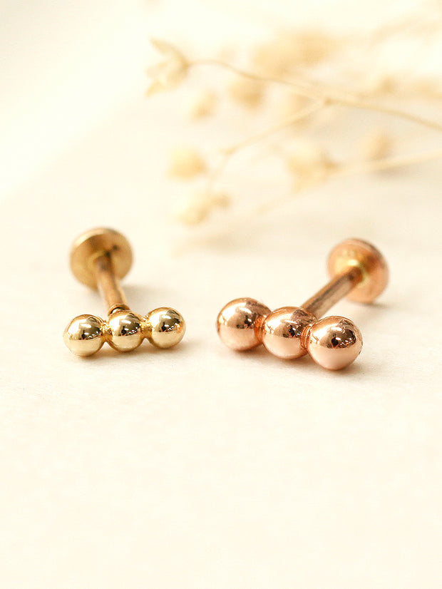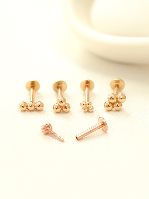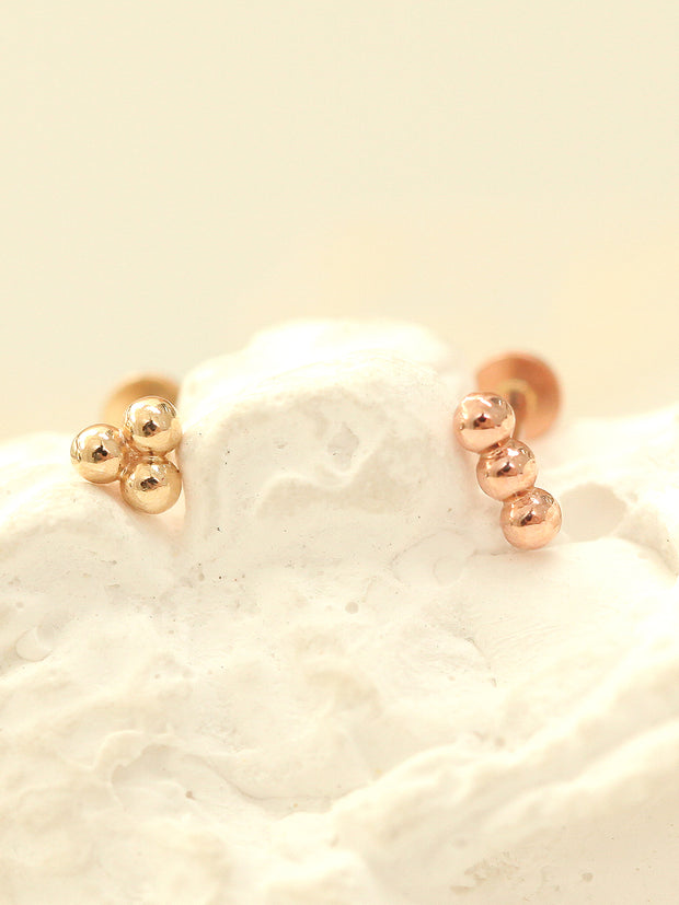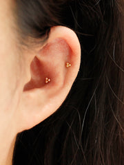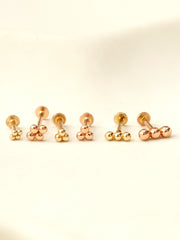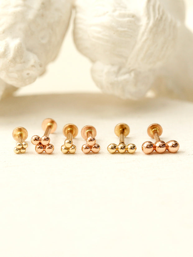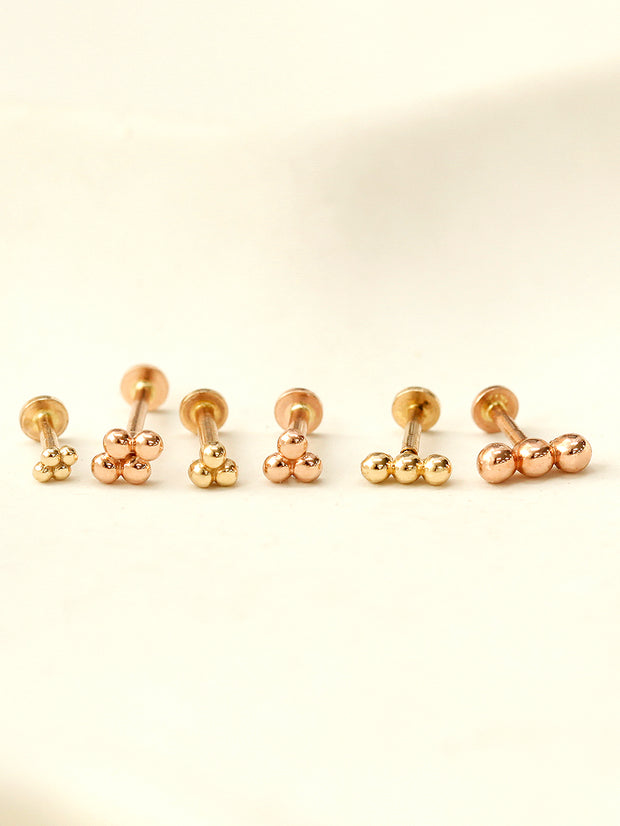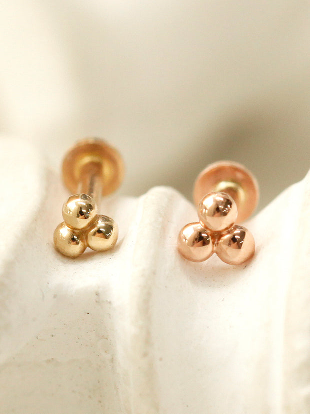 14K Gold Trio Clover Cartilage Earring 18G16G