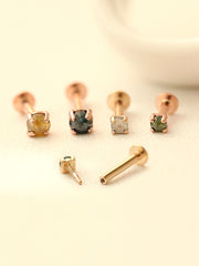 14KGF Square Crystal Earring 20G