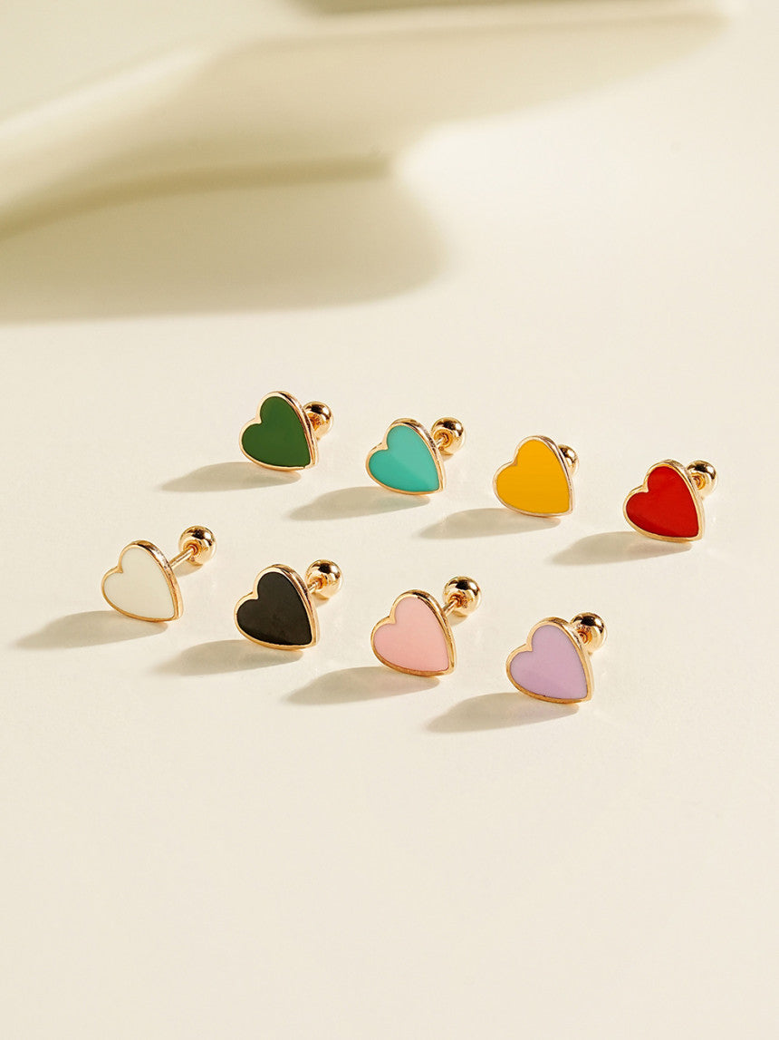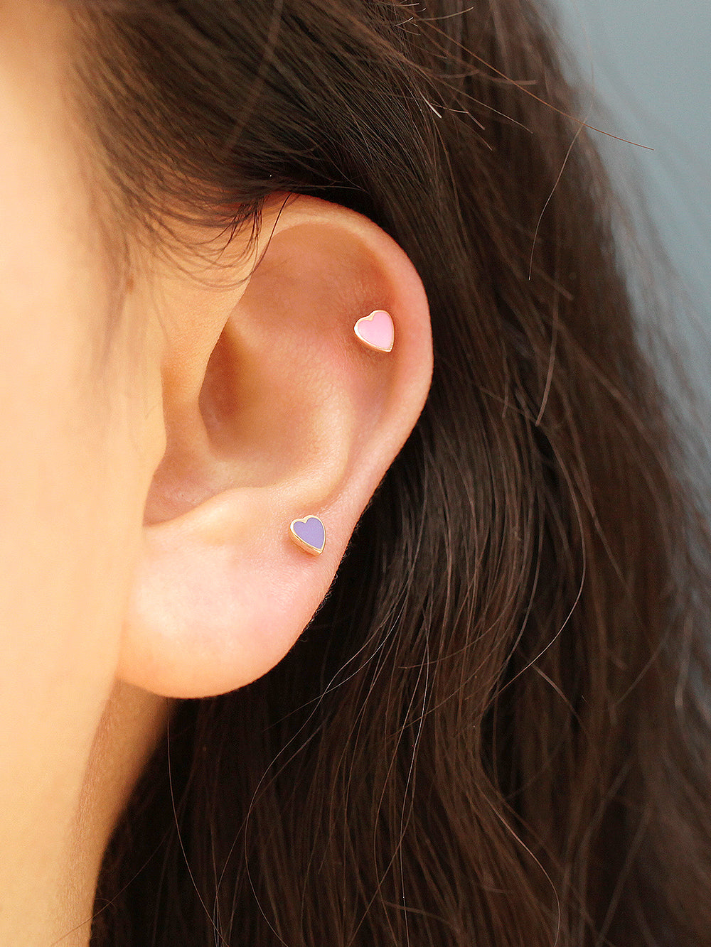 14K Solid Gold Enamel Heart Cartilage Earring 20G18G16G