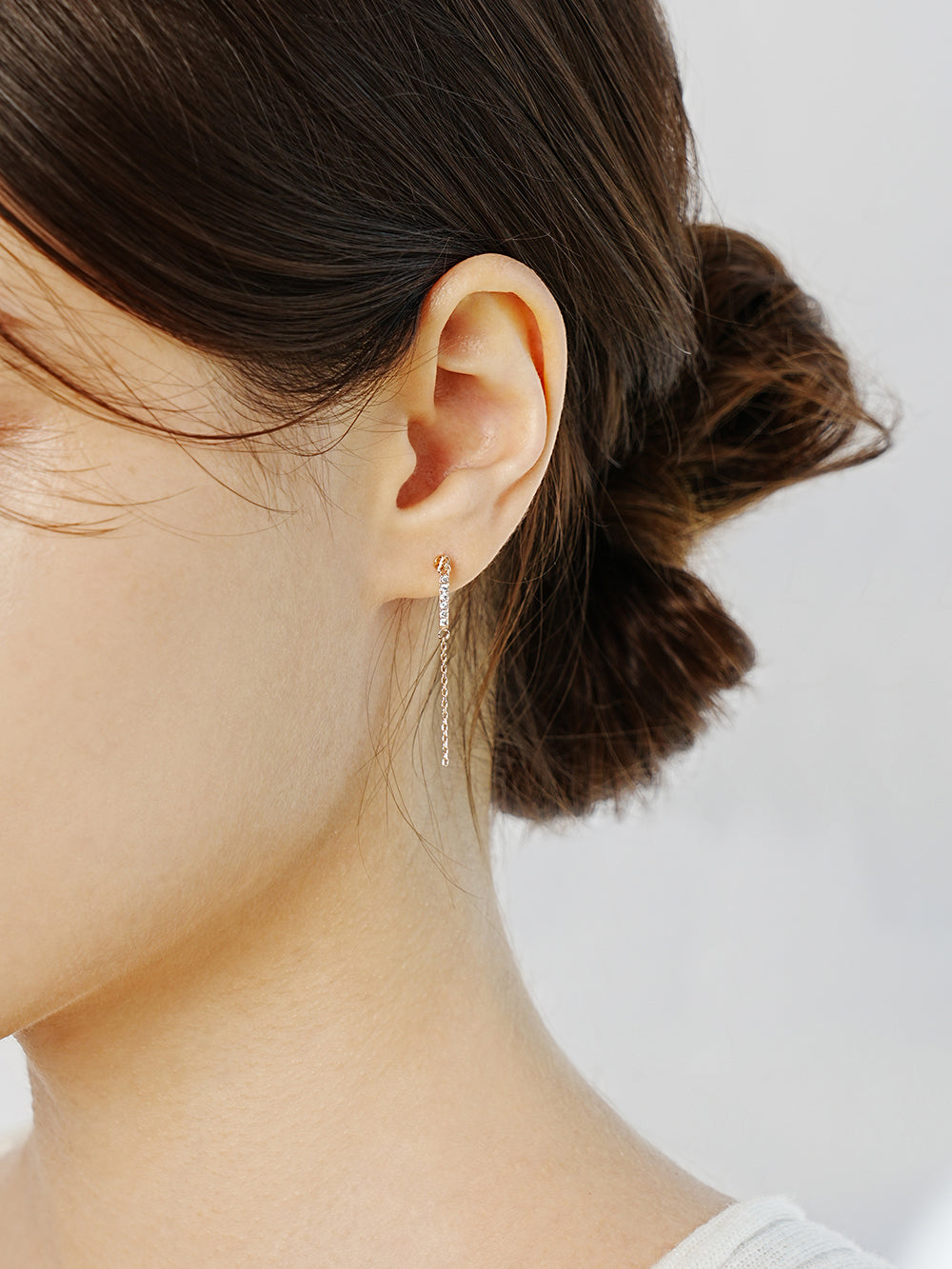 14K Gold Cubic Stick Long Chain Drop Cartilage Earring 20G