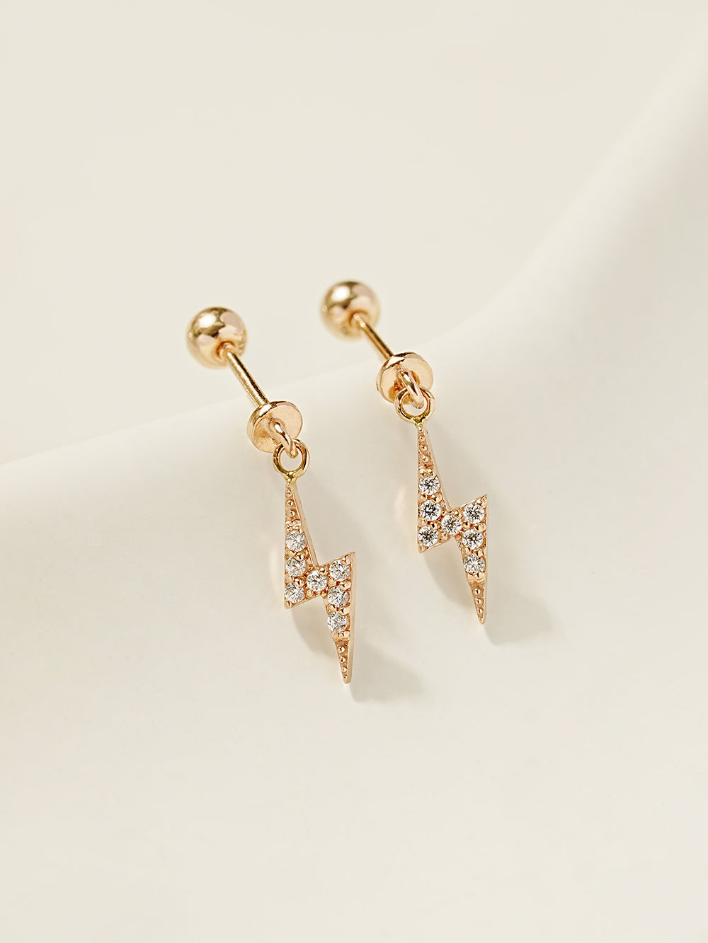 14K Gold Cubic Lightning Drop Cartilage Earring 20G