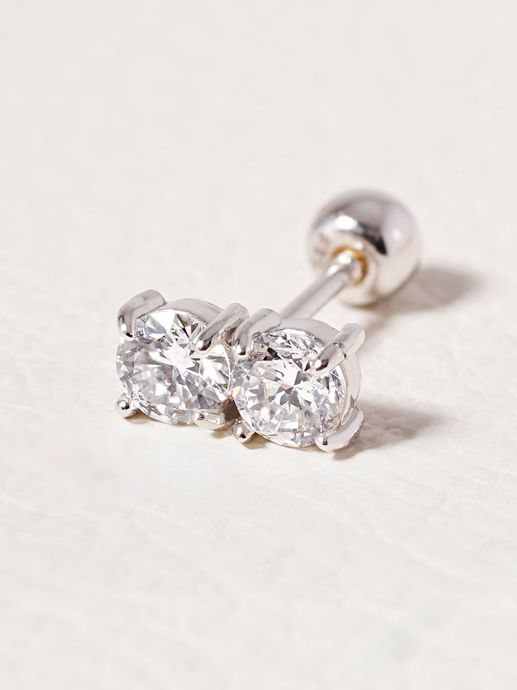 14K Solid Gold Lab Diamond Twin Stud Cartilage Earring 20G18G16G