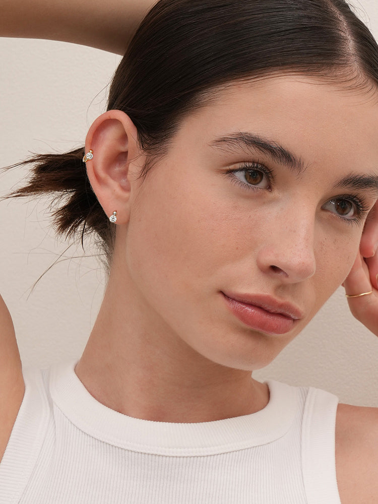14K Solid Gold Lab Diamond Lumiere Cartilage Earring 20G18G16G