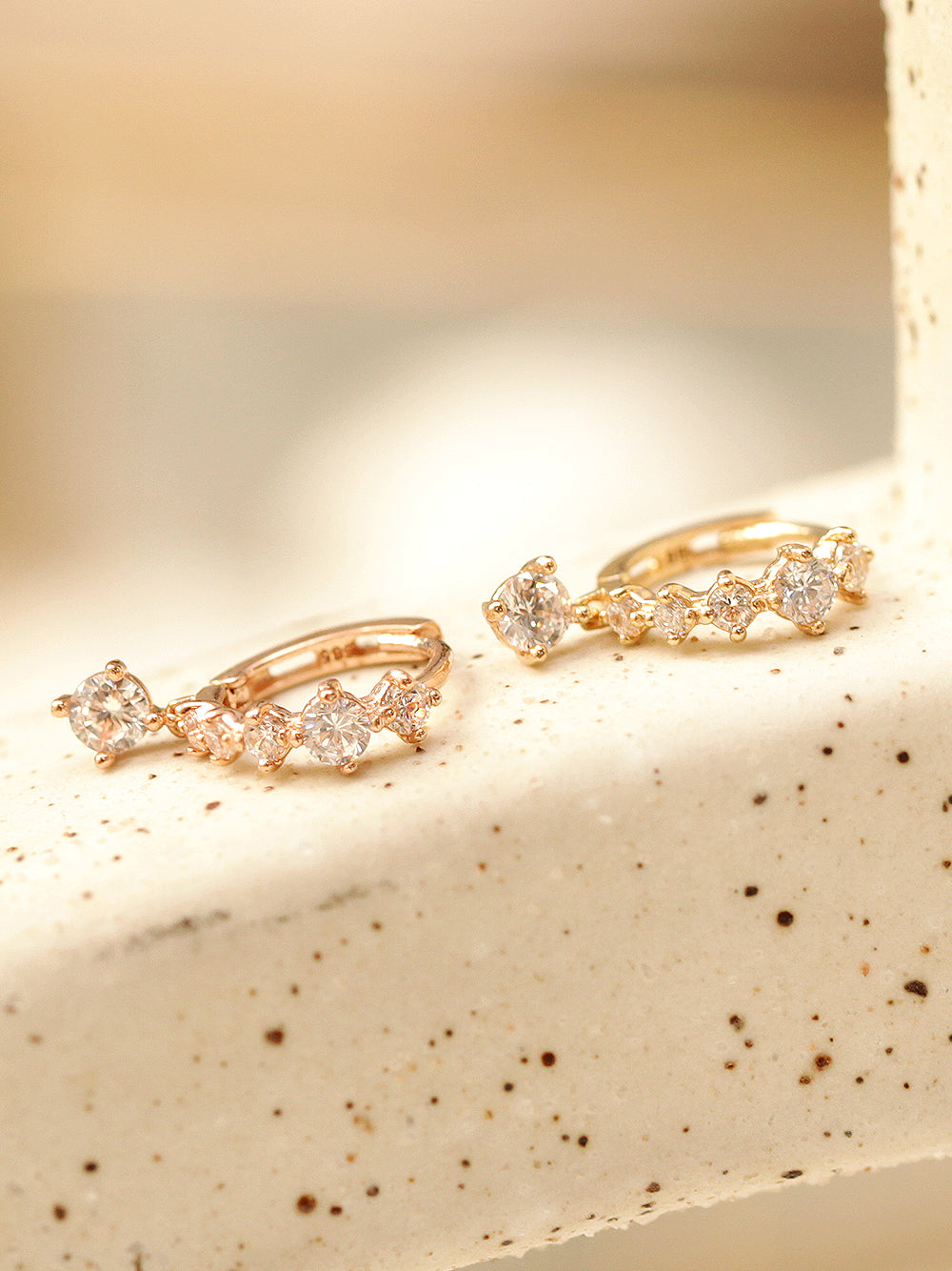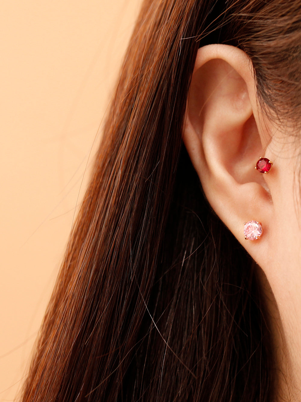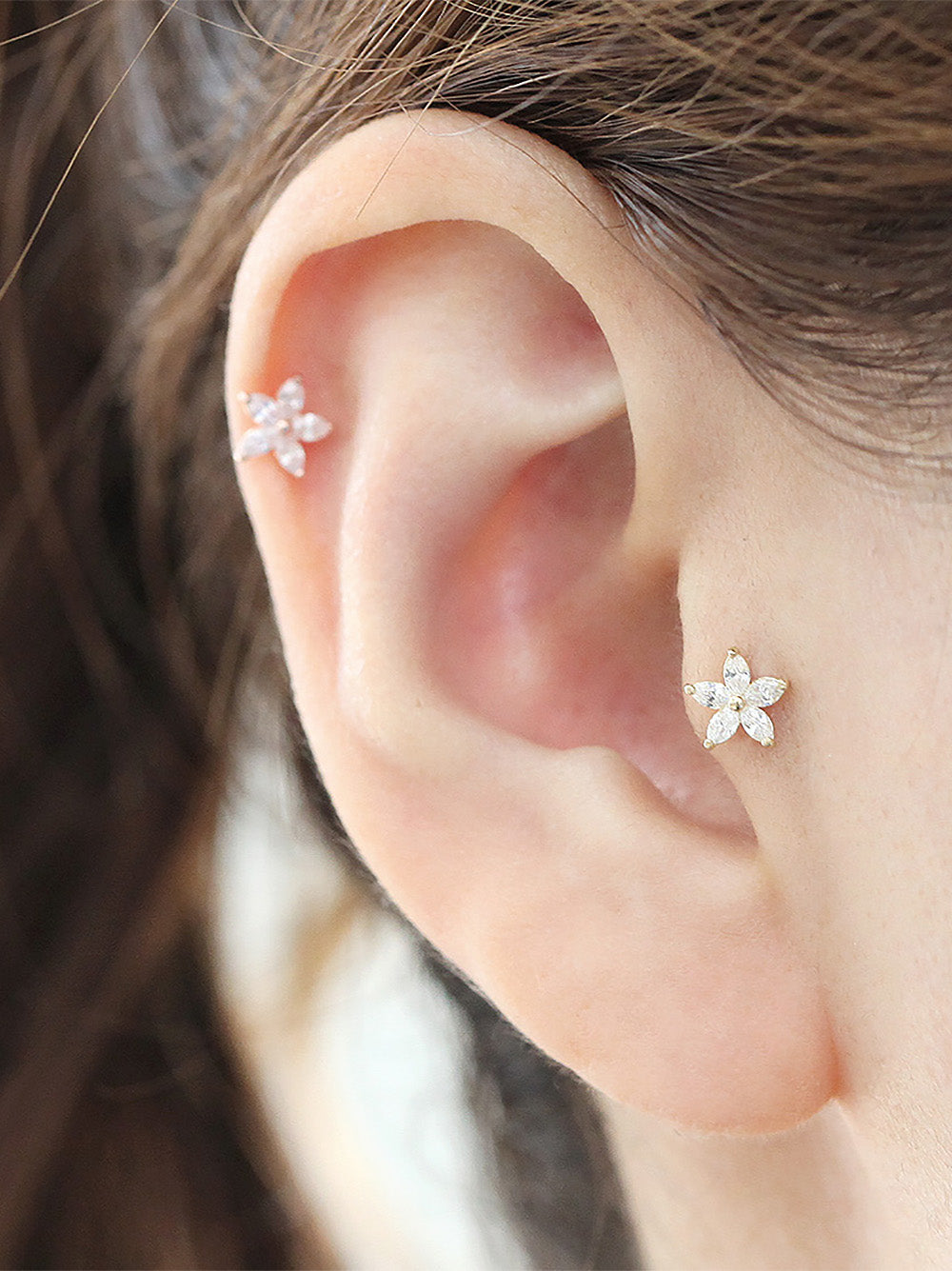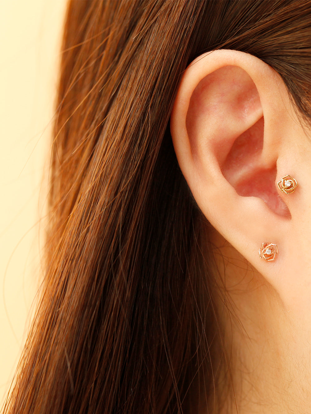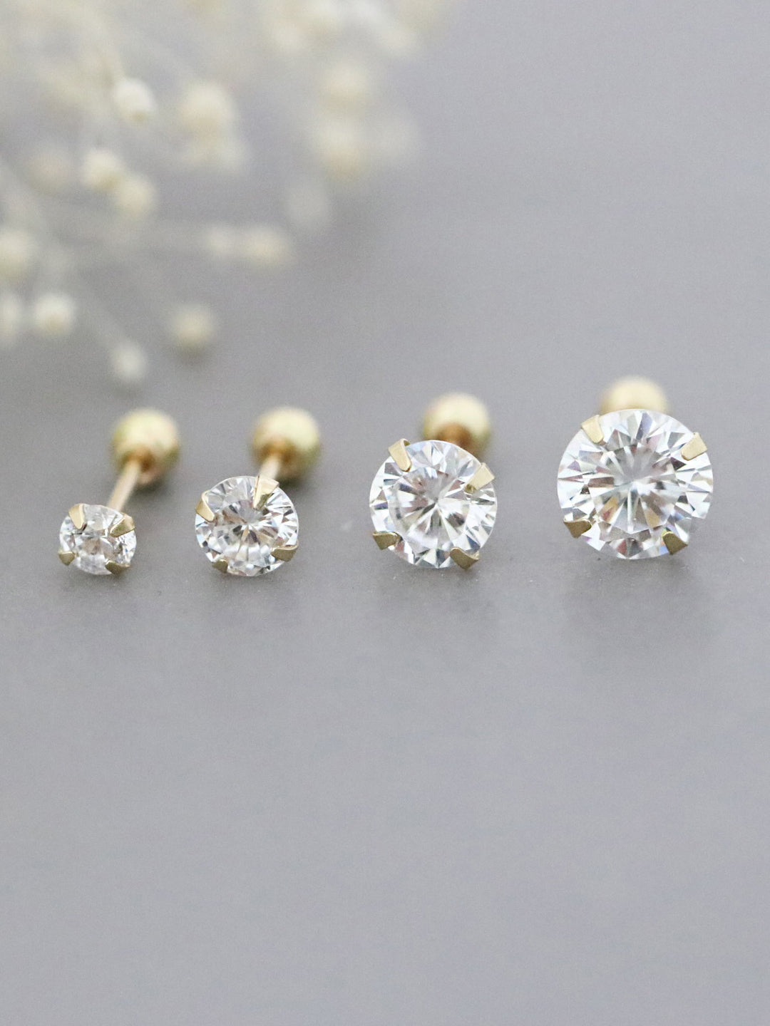 14K Gold Rose Cut Cubic 4 pronged Cartilage Earring 20G18G16G