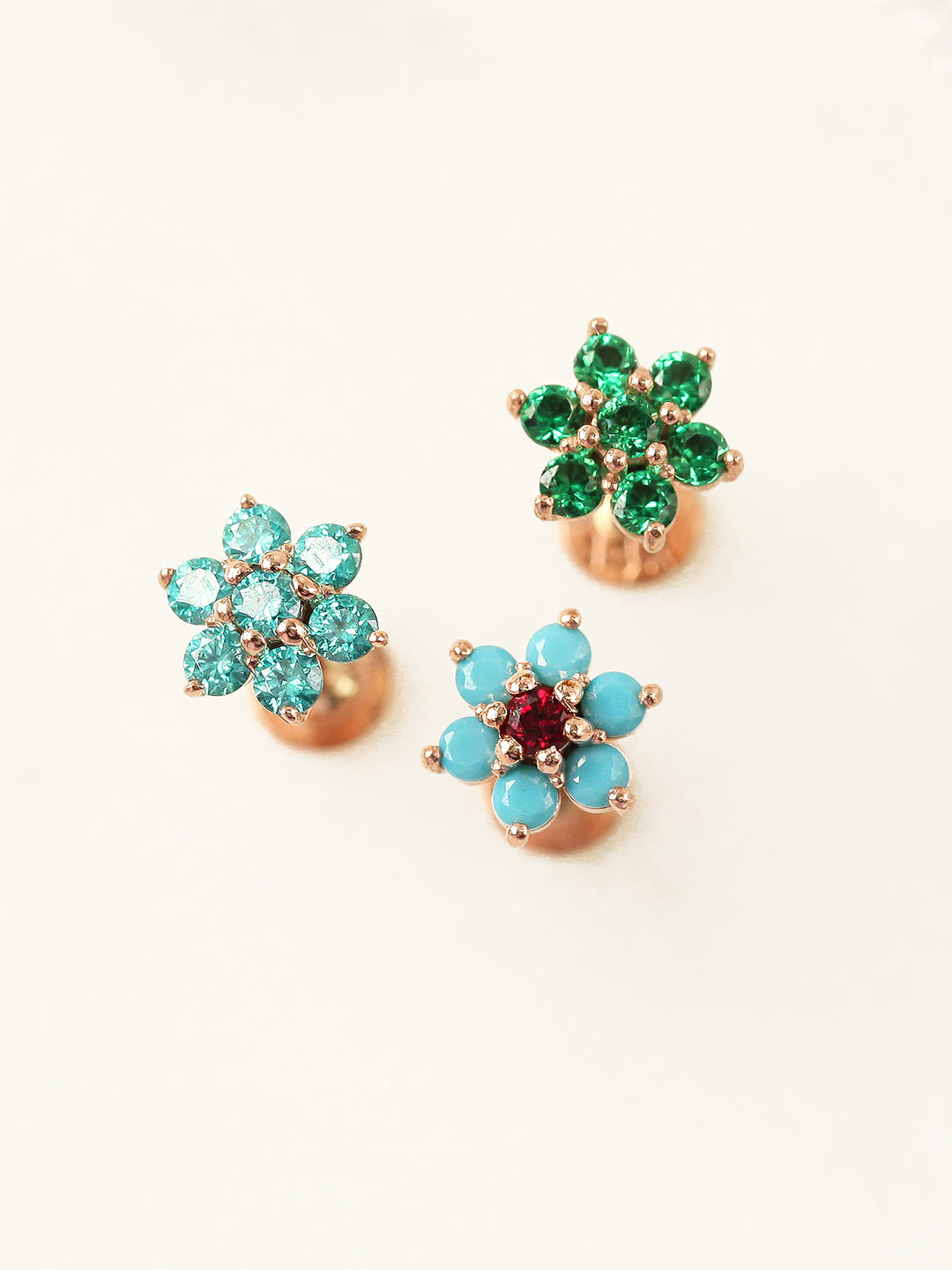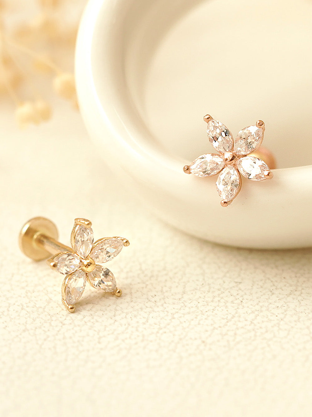 14K Gold Lovely Flower Labret Piercing 18G16G