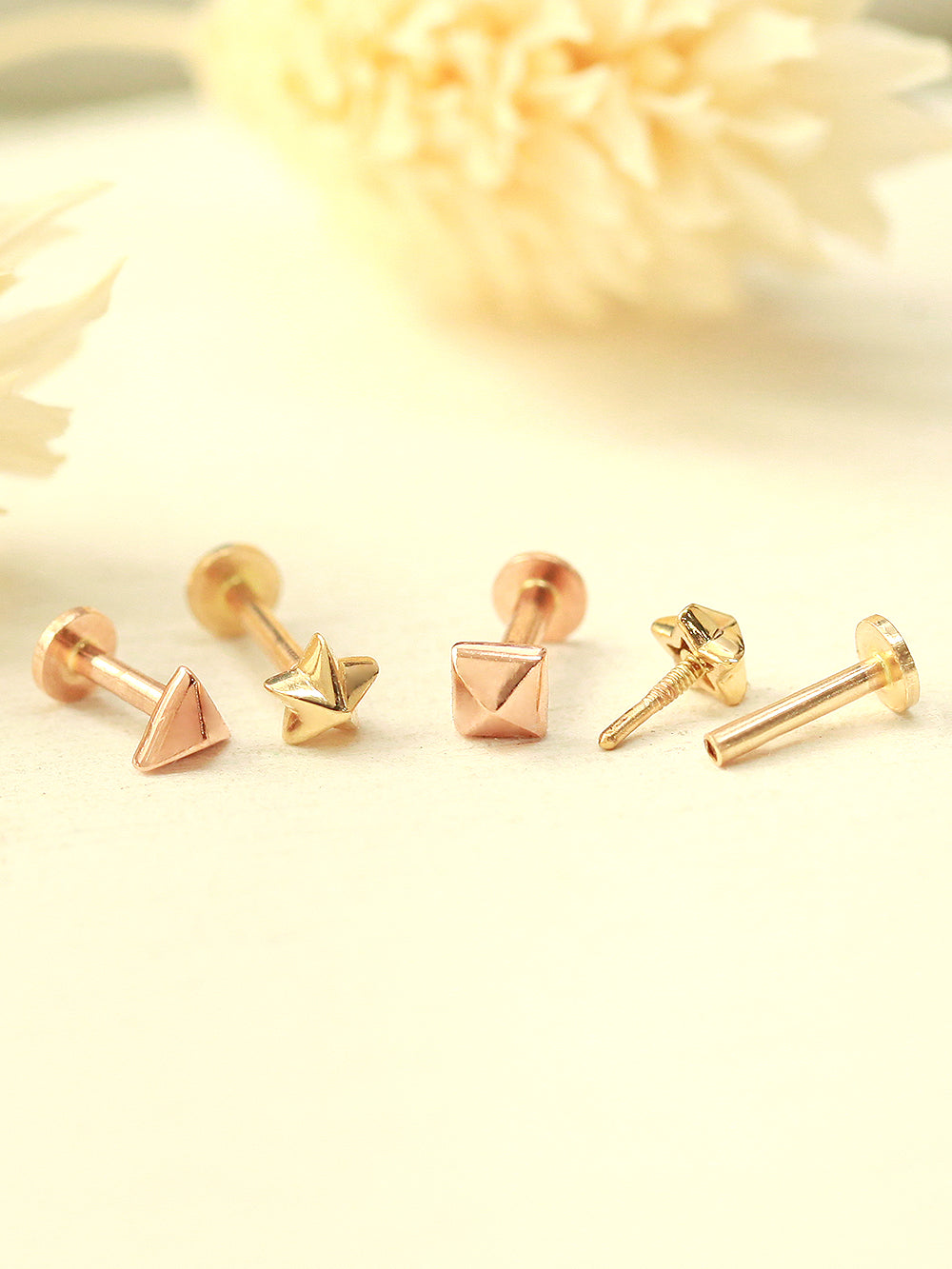 14K Gold Triangle Ball Rook Piercing 18G16G