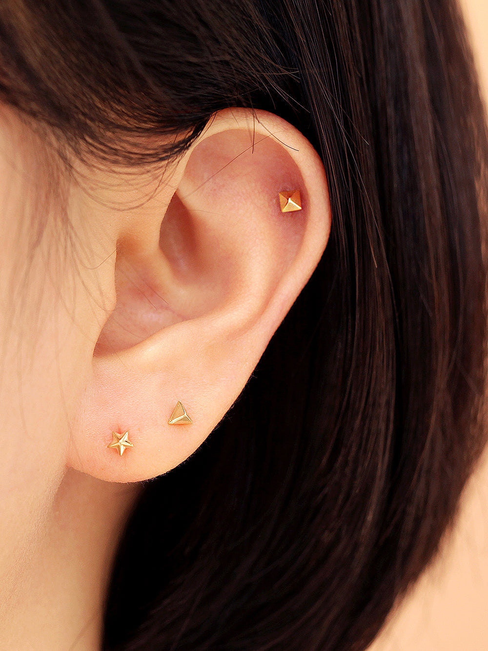 14K Gold Internal Tiny Triangle Cubic Cartilage Earring 20G18G16G