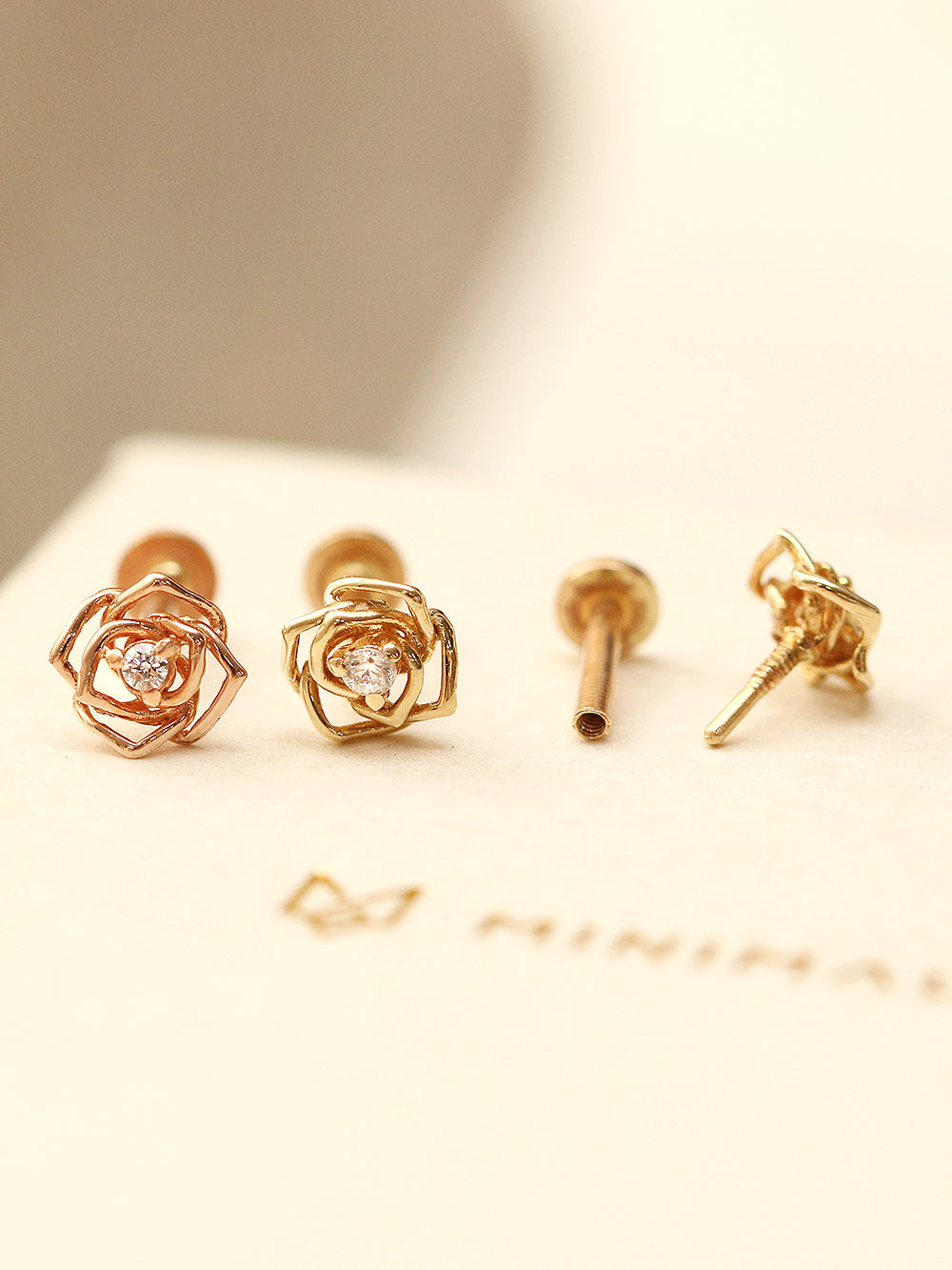 14K Gold Mini Cubic Rose Internally Threaded Labret Piercing 18G16G