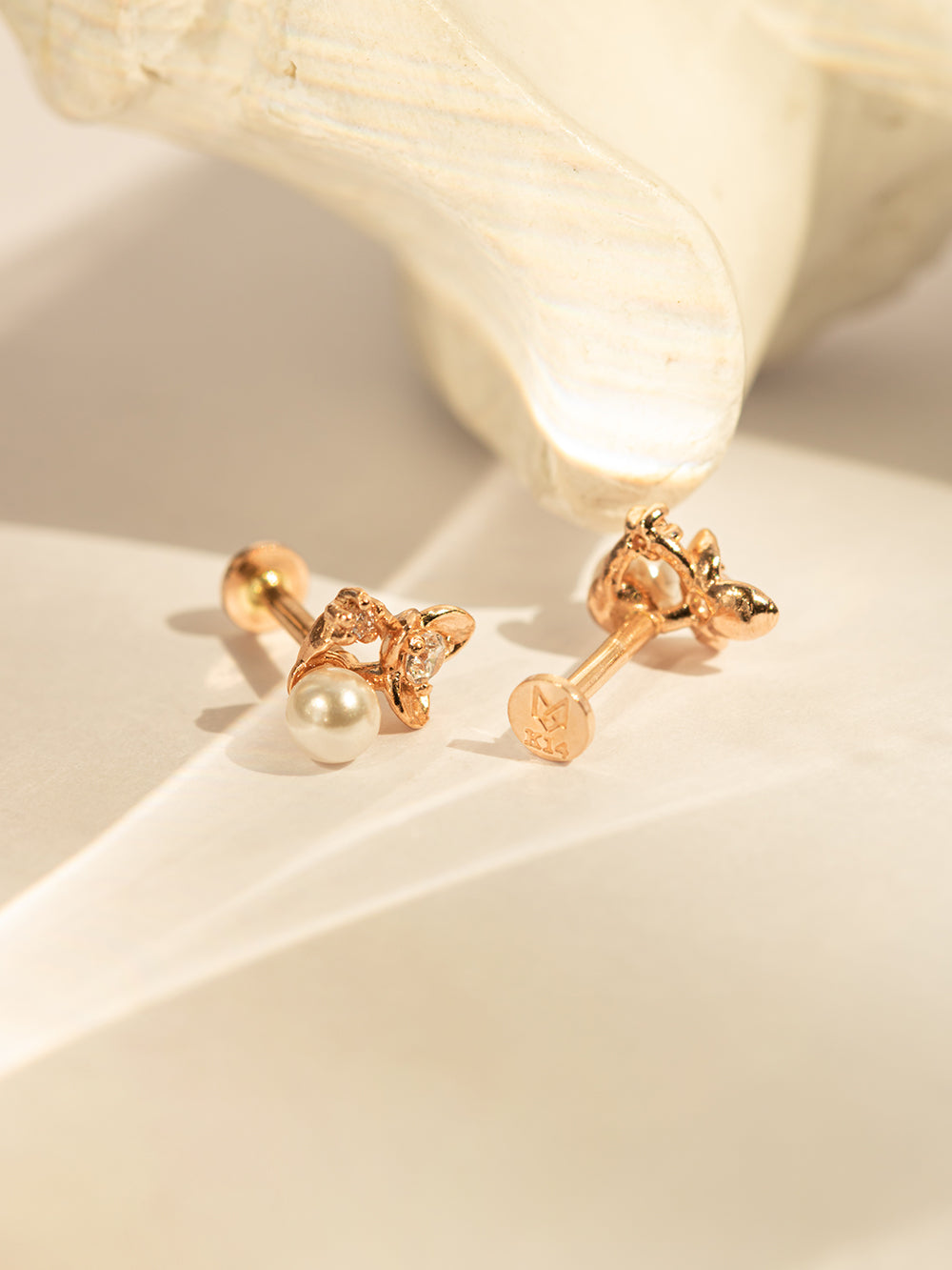 14K Gold Flower Pearl Internally Threaded Labret Piercing 18G16G