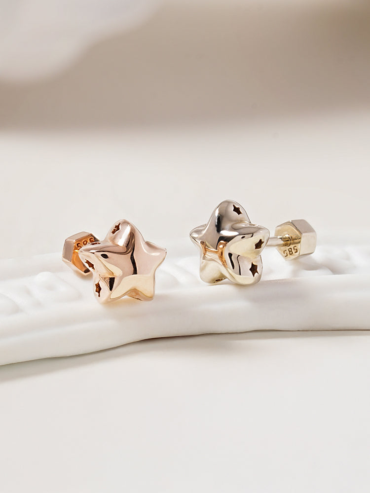 14K Solid Gold Star Golden Layer Cartilage Earring 18G