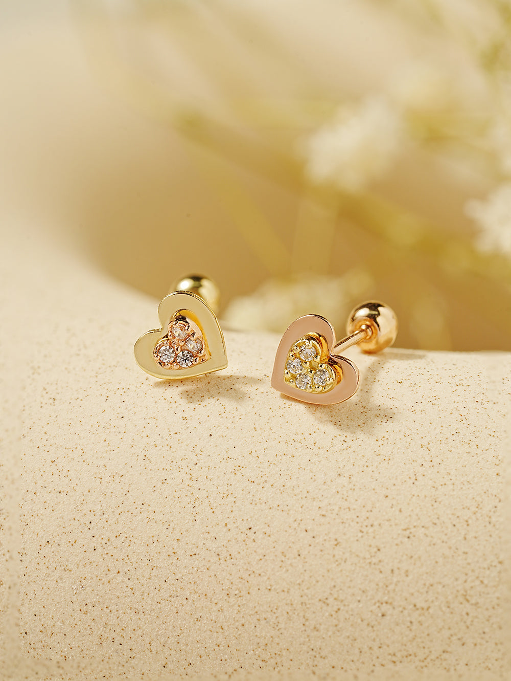 14K Gold Double Fold Cubic Heart Cartilage Earring 20G