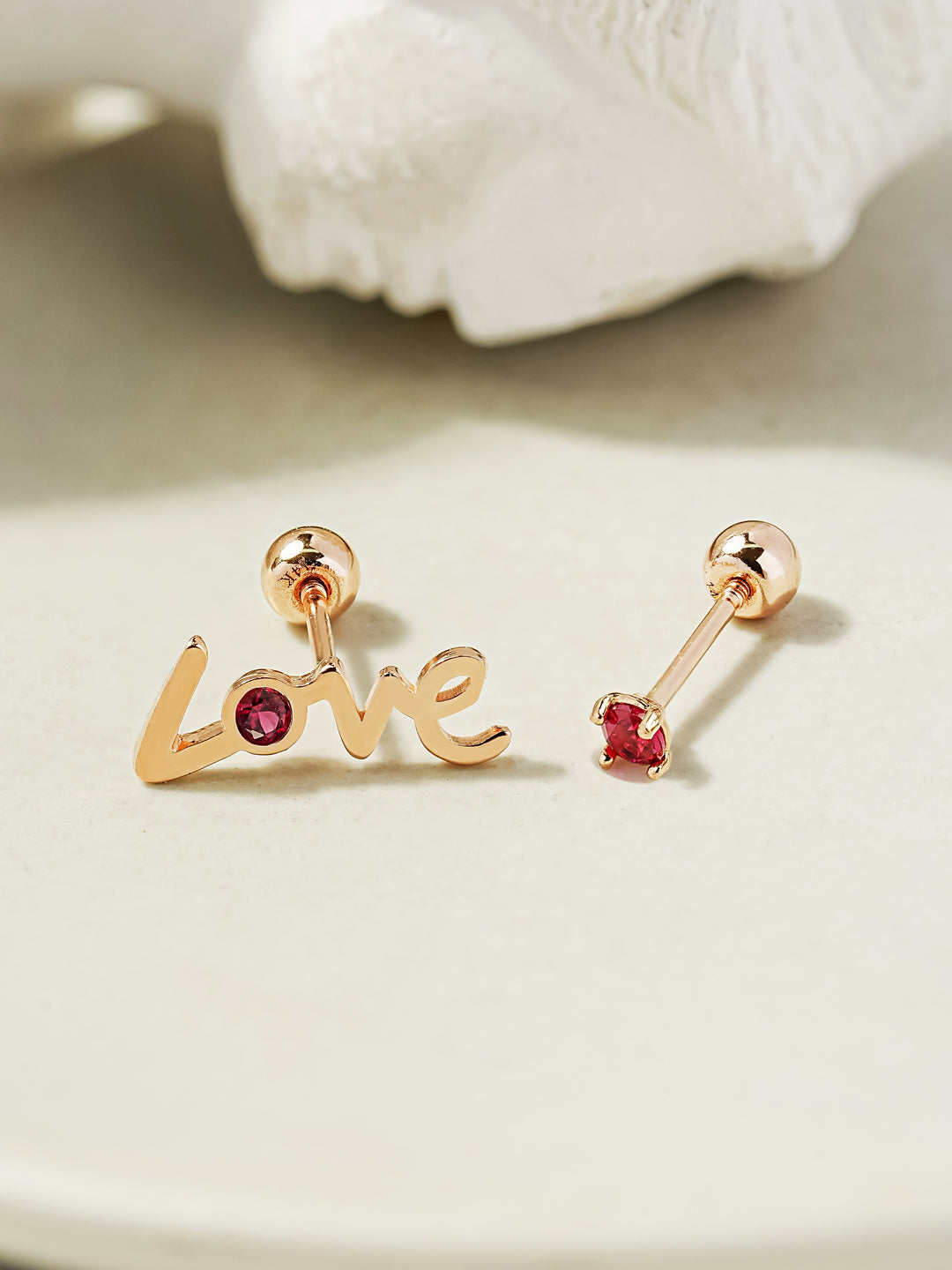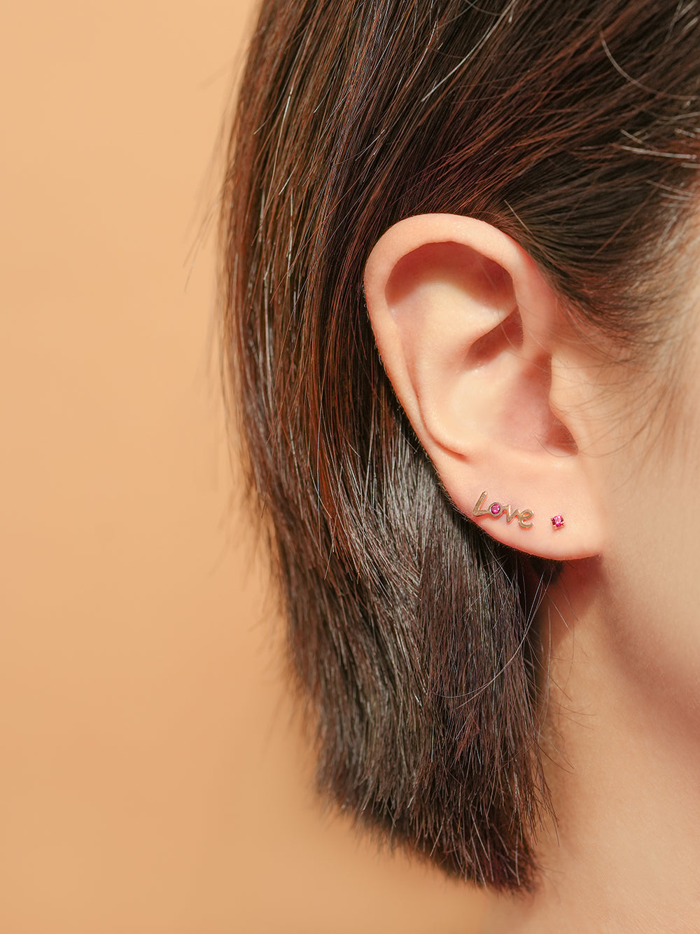 14K Gold Love Cubic Set Cartilage Earring 20G18G16G