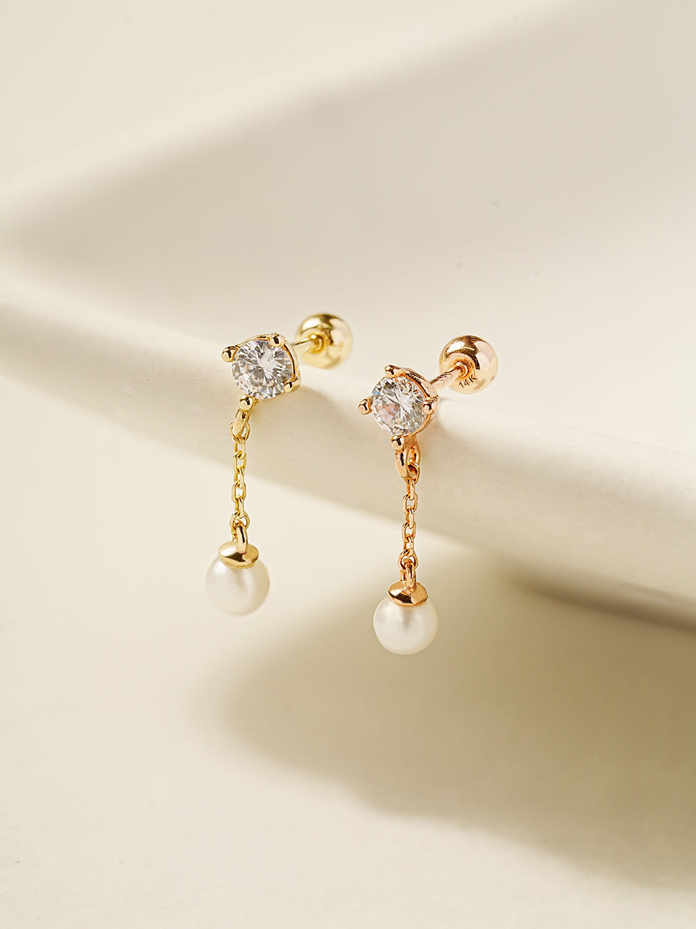 14K Gold Point Cubic Fresh Water Pearl Drop Cartilage Earring 20G18G16G