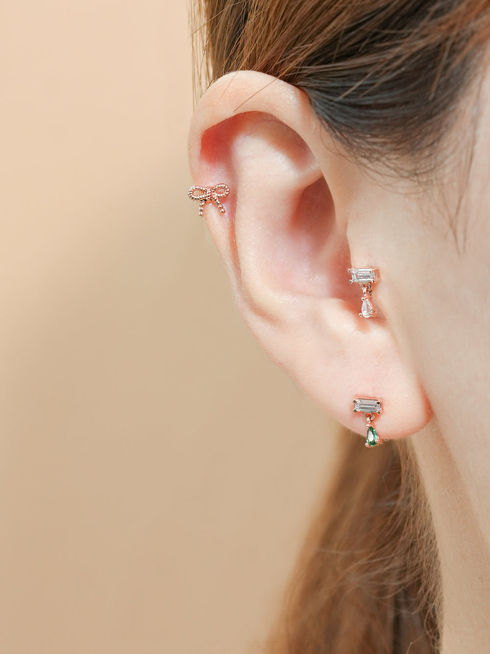 Delicate and feminine 14K gold ribbon cartilage earrings designed for everyday elegance. Discover MinimalBijoux’s signature collection of dainty, hypoallergenic piercings perfect for sensitive ears.