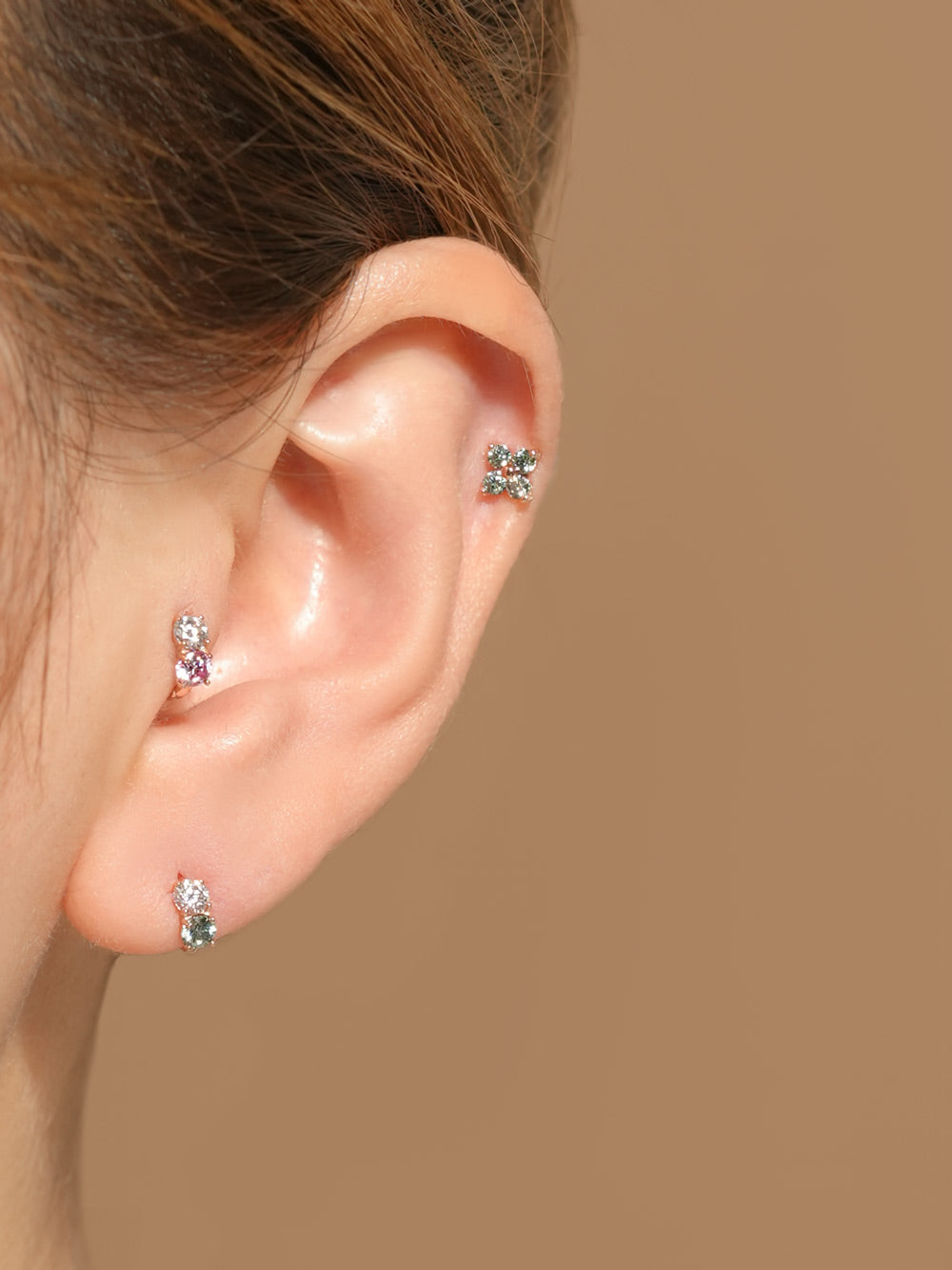 14K 18 Moissanite Dia Mini Two Way Hoop Earring