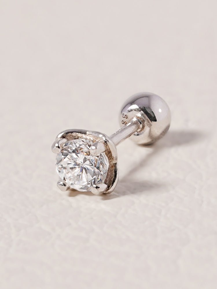 14K Solid Gold Lab Diamond Classic Square Cartilage Earring 20G18G16G