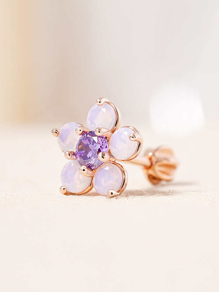 14K Solid Gold Lilac Blossom Cartilage Earring 18G16G