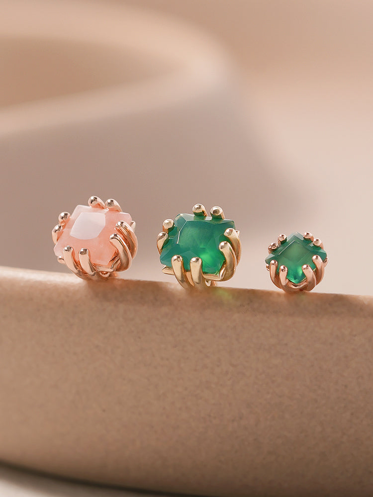 14K Solid Gold Morning Forest Gemstone Cartilage Earring 18G16G