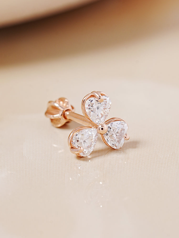 14K Gold Trio Clover Cartilage Earring 18G16G