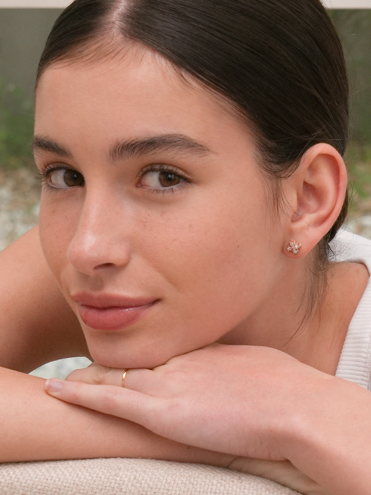 14K Solid Gold Snowflake Silhouette Crystal Cartilage Earring 18G16G