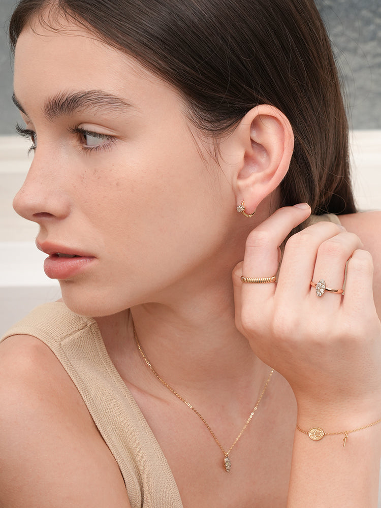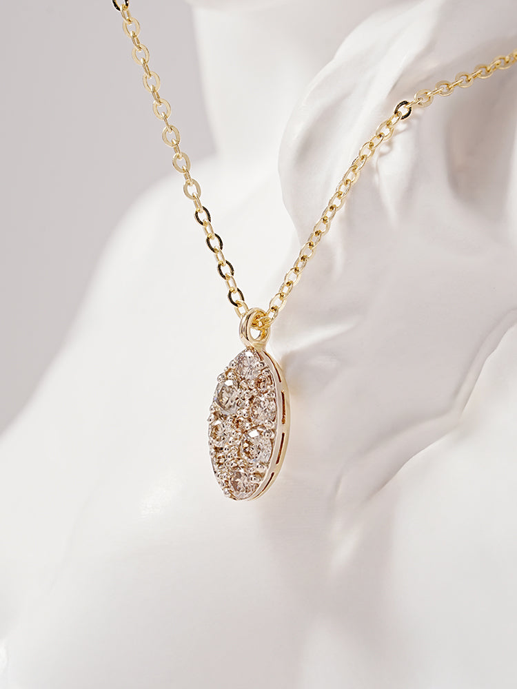 14K 18K Solid Gold Glitter Oval Diamond Necklace