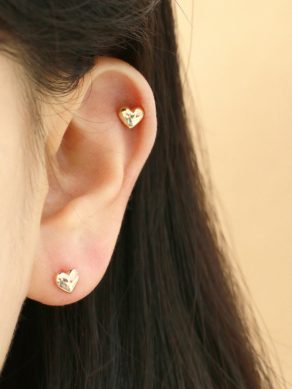 14K Gold Volume Heart Cartilage Earring 20G
