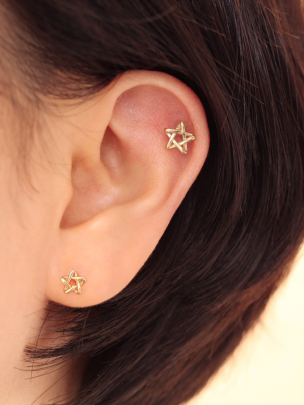 14K Gold Minimi Cubic Star Curve Piercing 20G