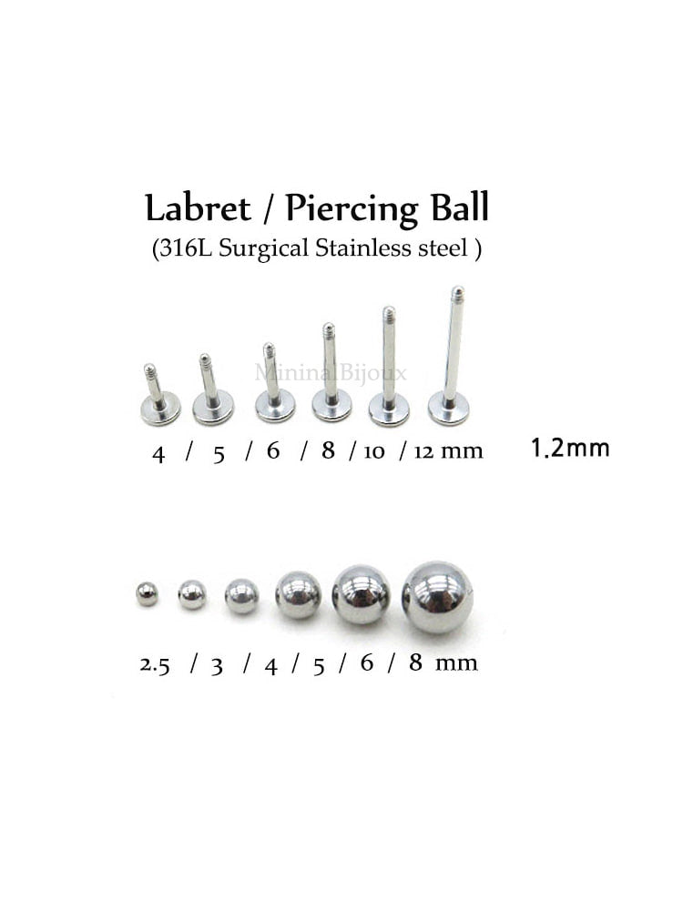 Material : Brass Head, Surgical Steel Bar / Labret / Ending Ball