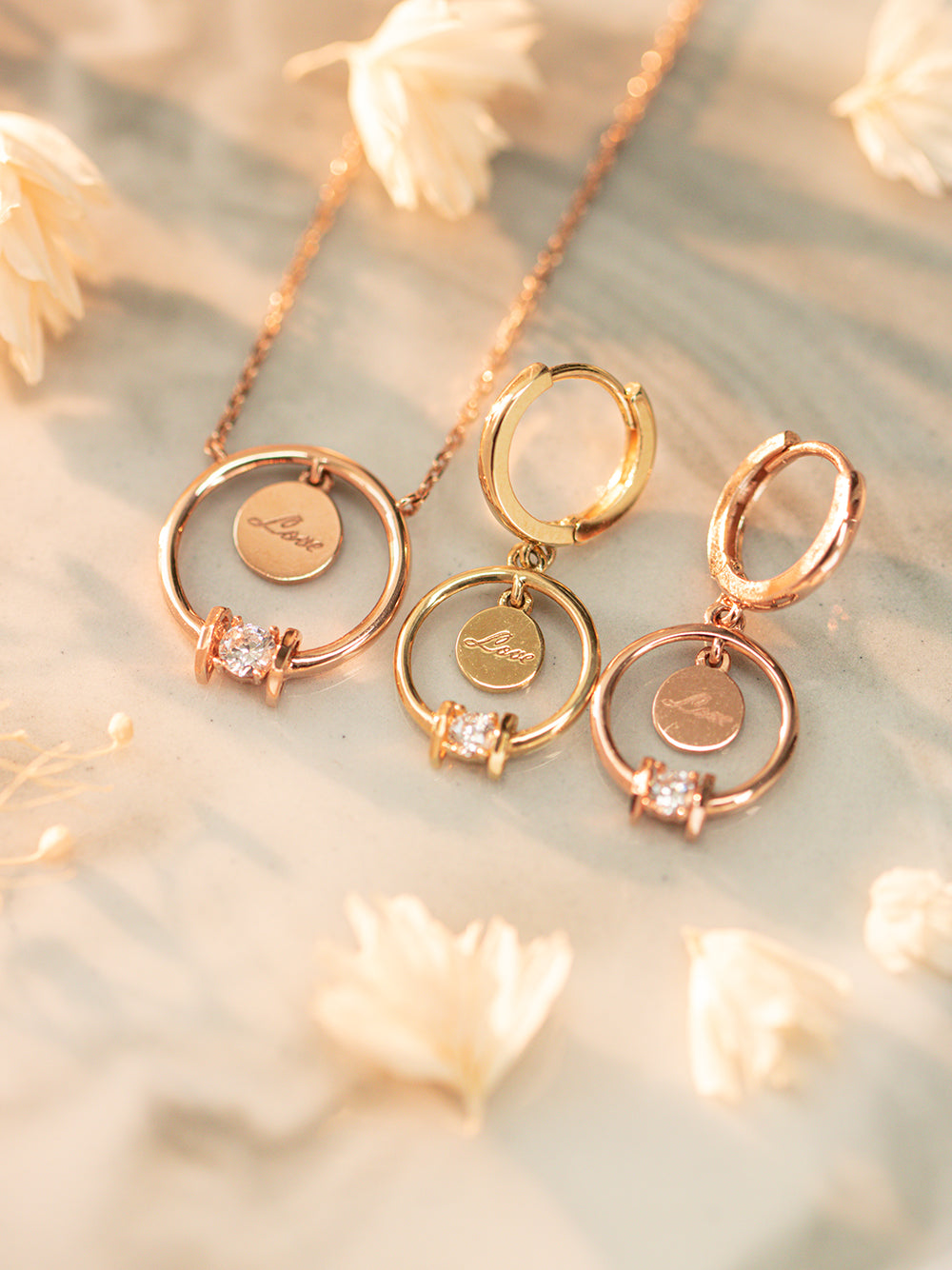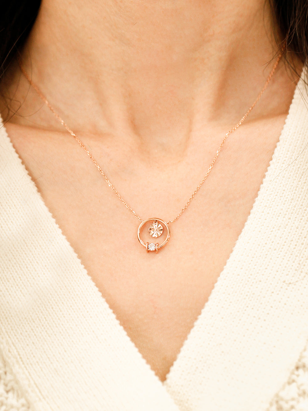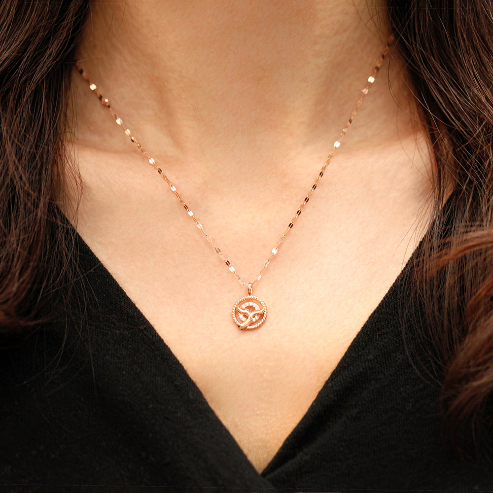 14K 18K Gold Love Circle Cutting Drop Necklace