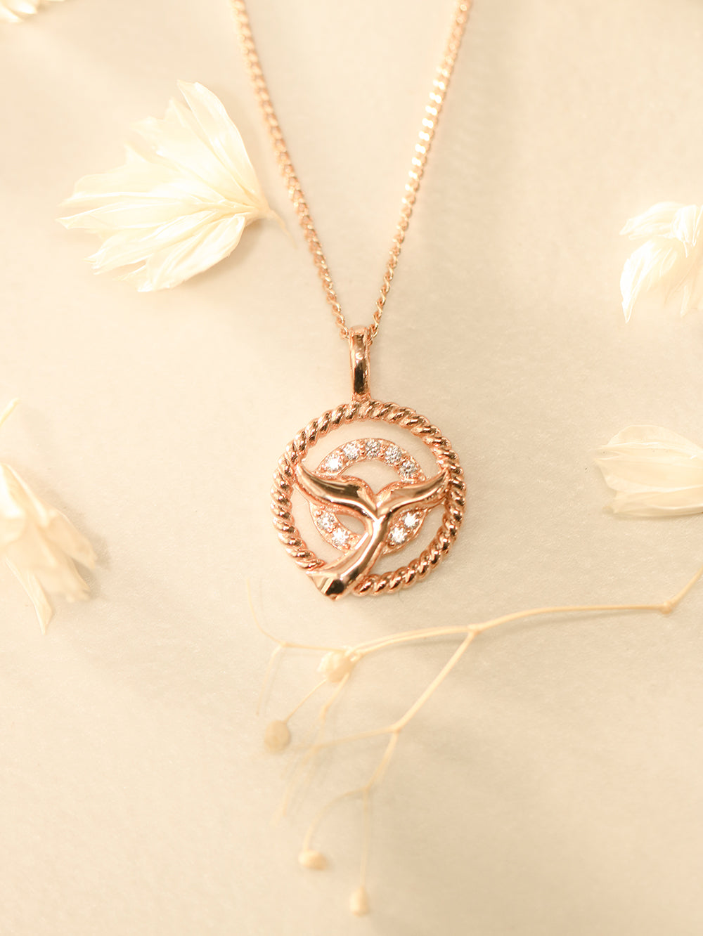 14K 18K Gold Lucky Whale Tail Necklace Pendant