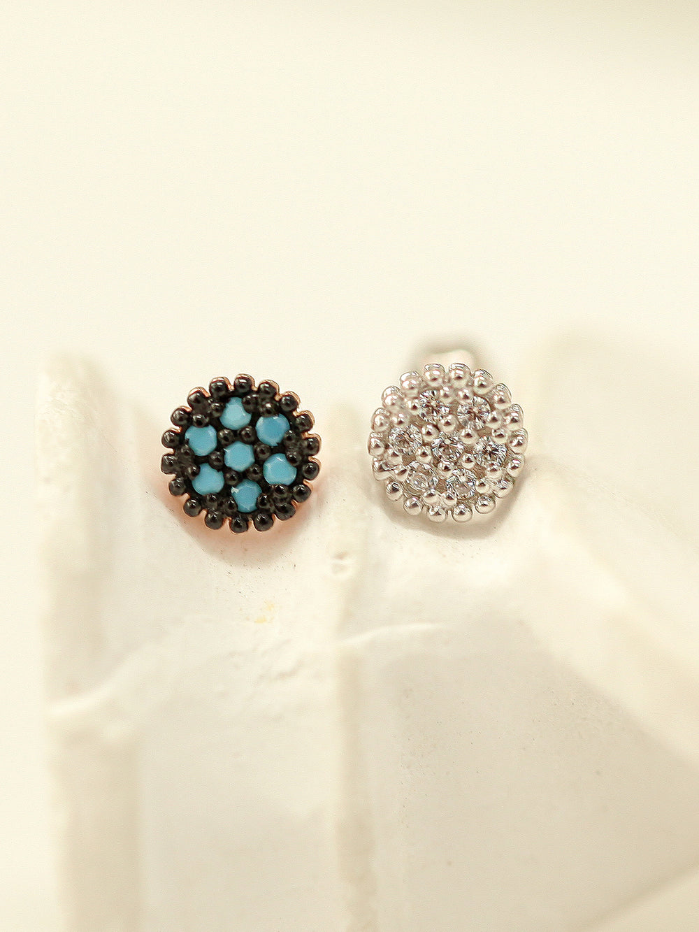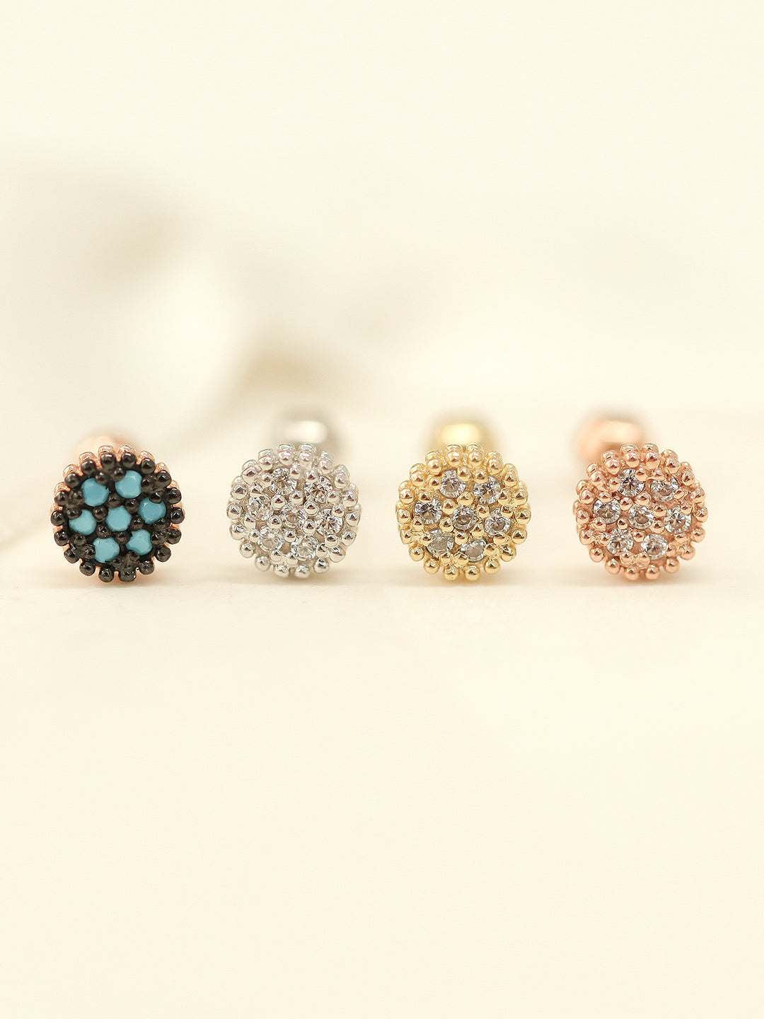 14K Solid Gold Opal Turquoise Cubic Flower Internally Threaded Labret Piercing 18G16G