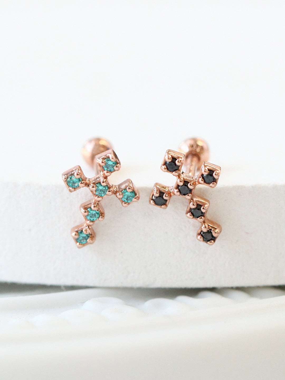 14K Gold Mini Maple Color CZ Cartilage Earring 18G16G