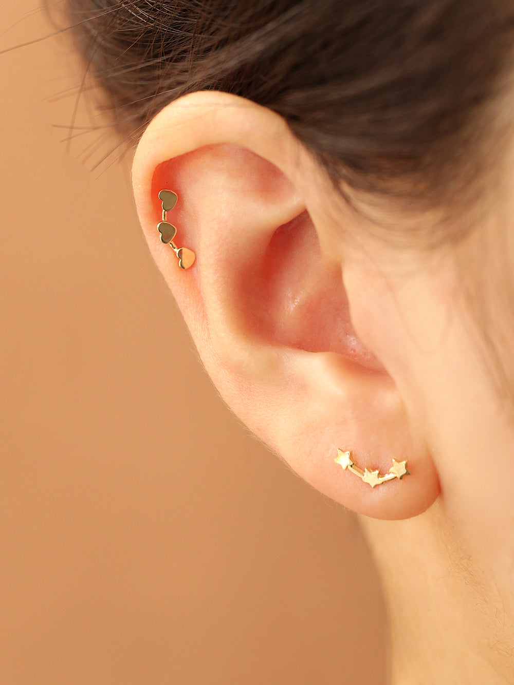 14K Gold Minimi Bean Heart Cartilage Earring 20G18G16G