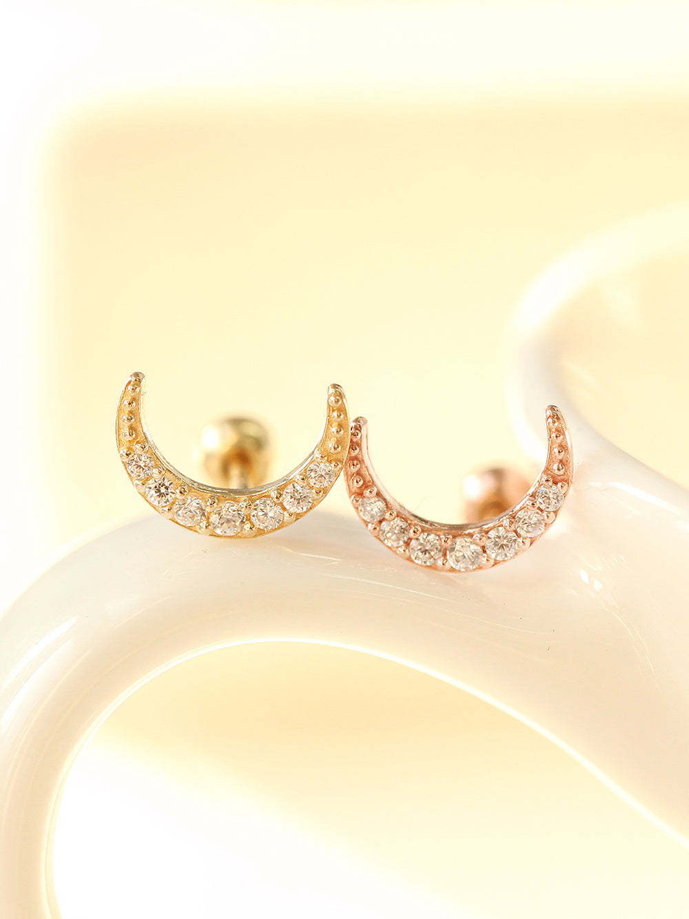 14K Gold Dangle Moon Cartilage Earring 18G16G