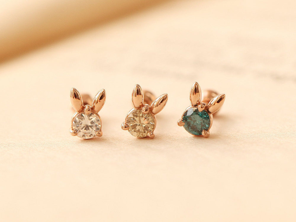 14K Solid Gold Lab Diamond Rose Internally Threaded Labret Piercing 20G