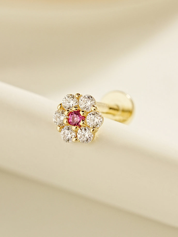 14K Solid Gold Harmony Flower Internally Threaded Labret Piercing 20G