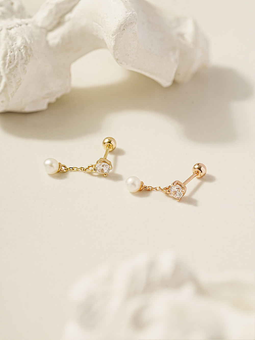 - 14K Solid Gold, Cubic Zirconia, Fresh Water Pearl
