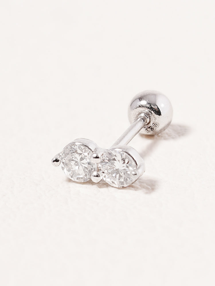 14K Solid Gold Lab Diamond Twin Stud Cartilage Earring 20G18G16G