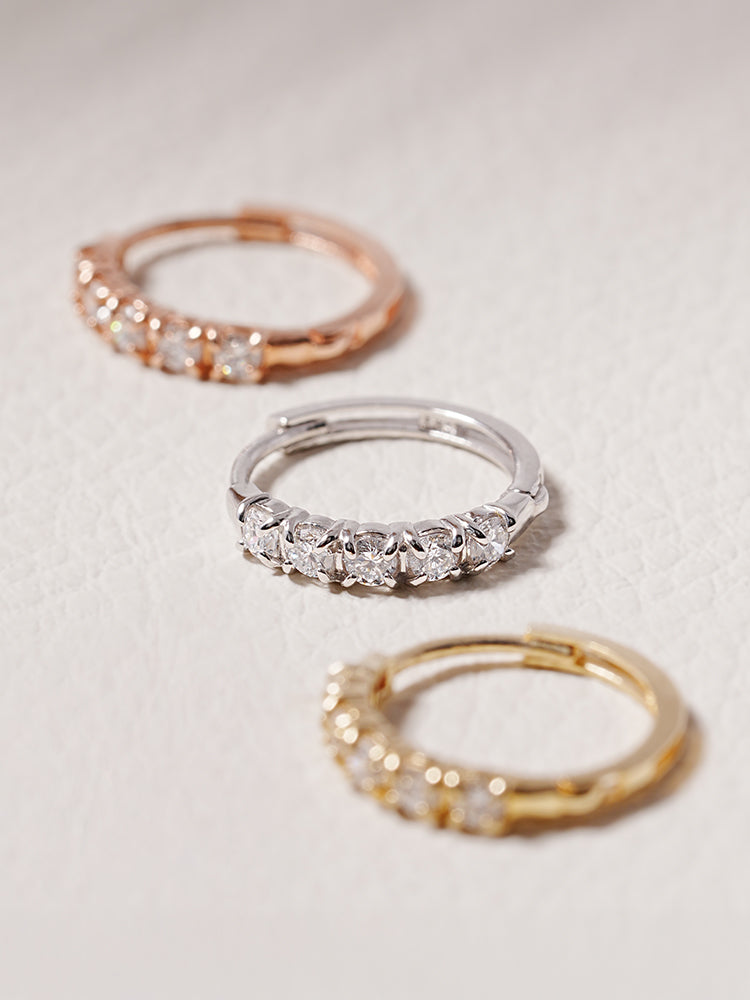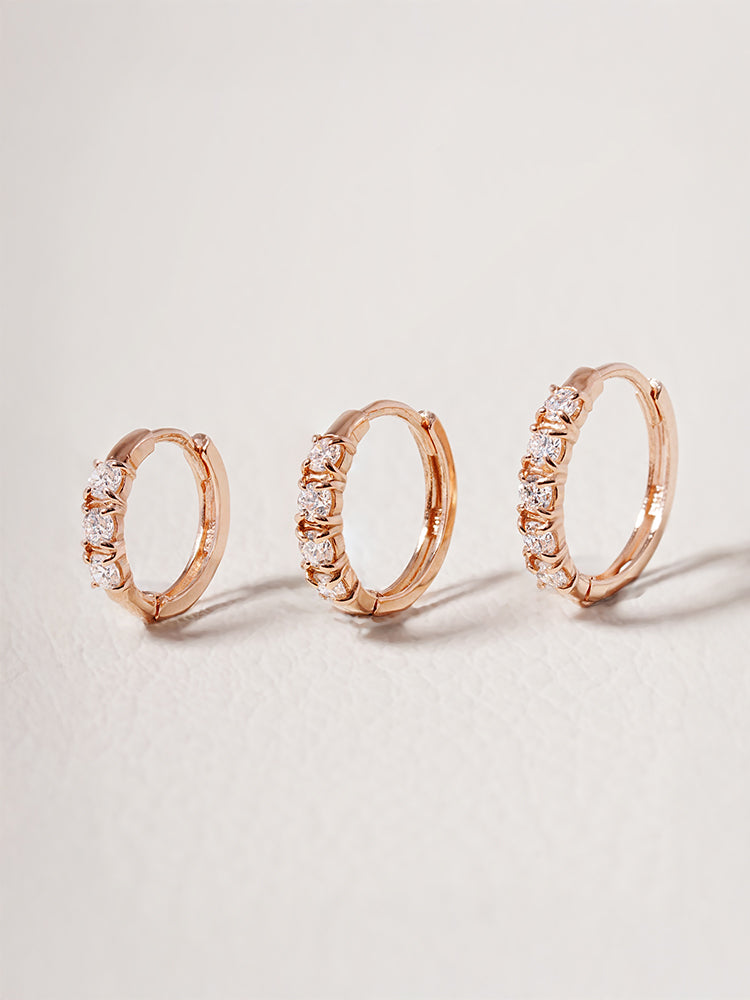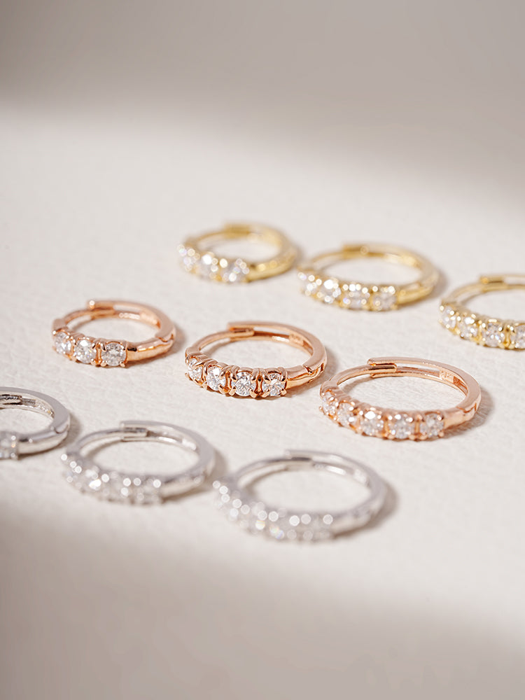 14K 18K Solid Gold Lab Diamond Layered Daily Cartilage Hoop Earring