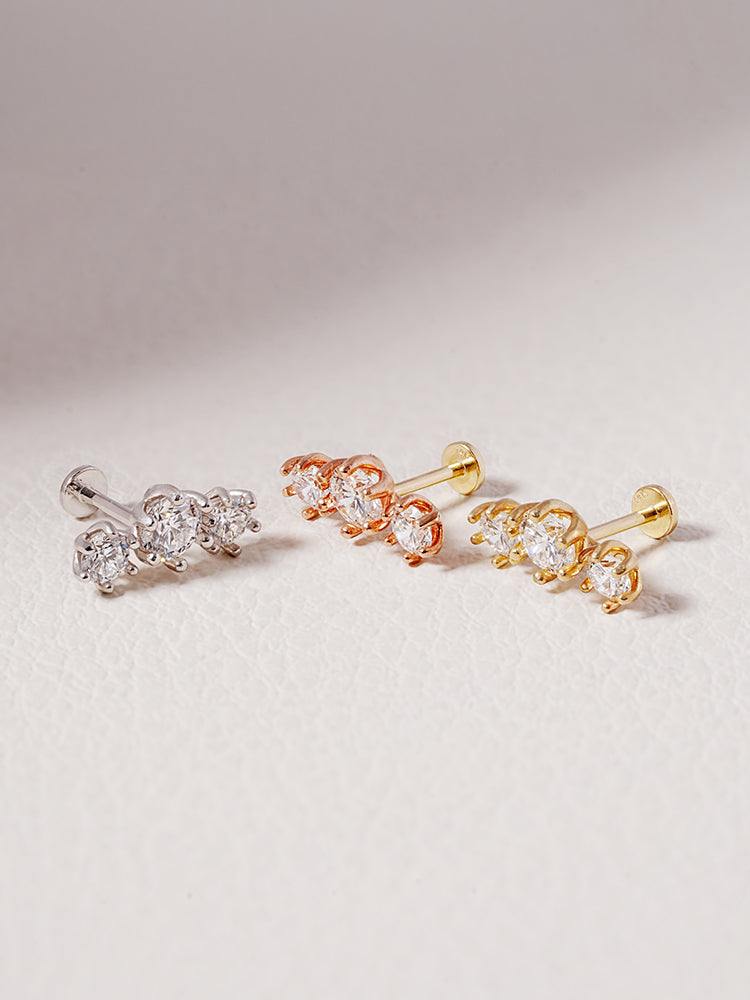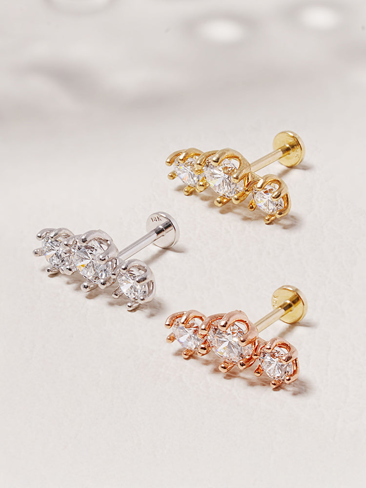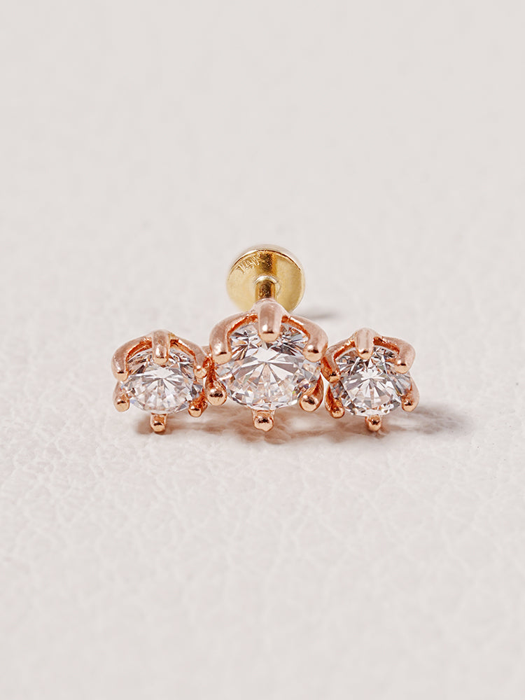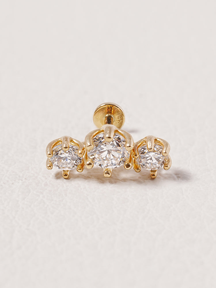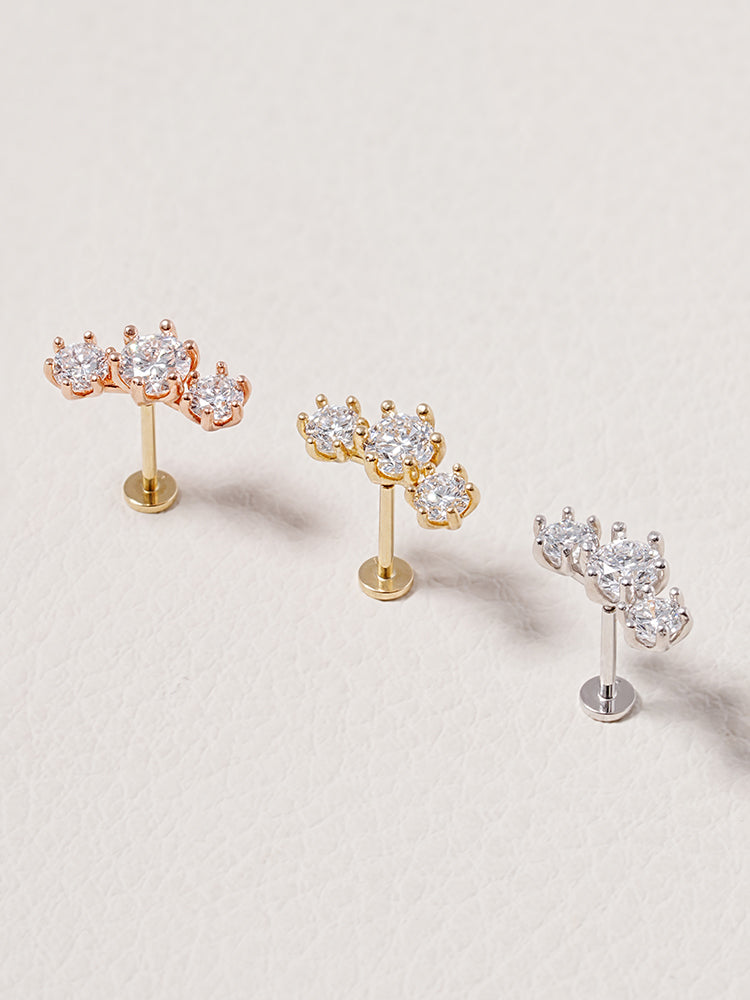 14K Solid Gold Lab Diamond Lumiere Internally Threaded Labret Piercing 20G