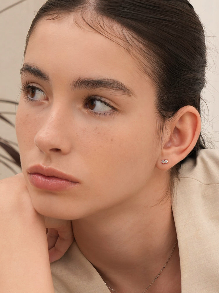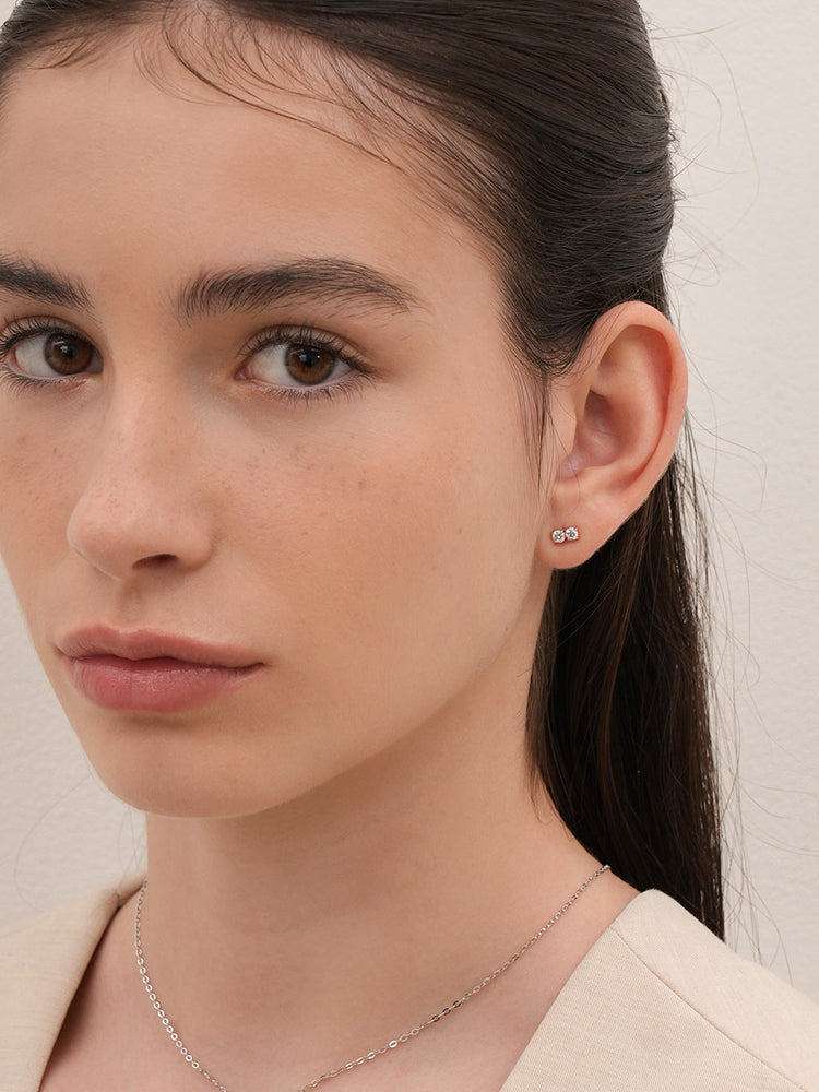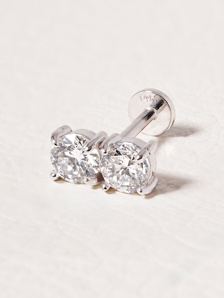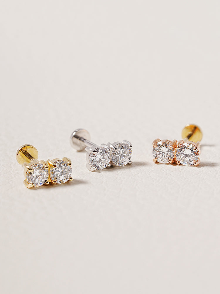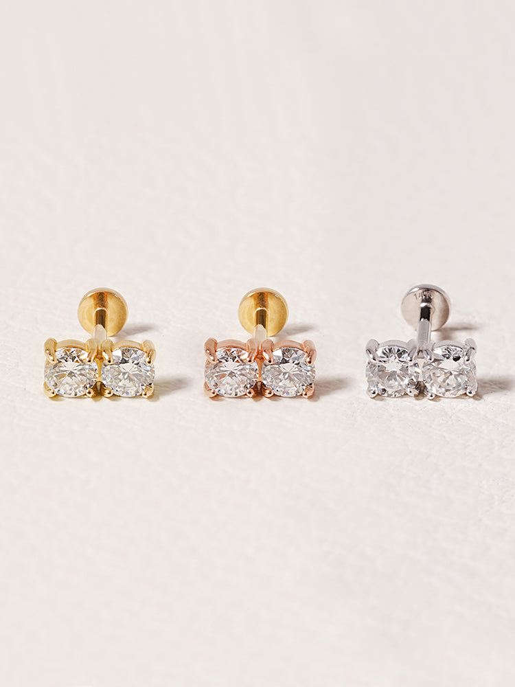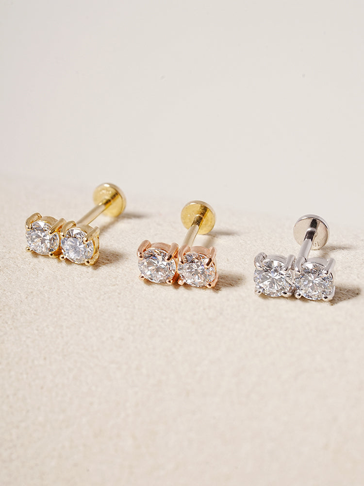 14K Solid Gold Lab Diamond Twin Stud Internally Threaded Labret Piercing 20G