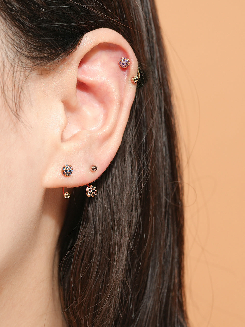 14K Gold Double Round Cubic Cartilage Earring 20G18G