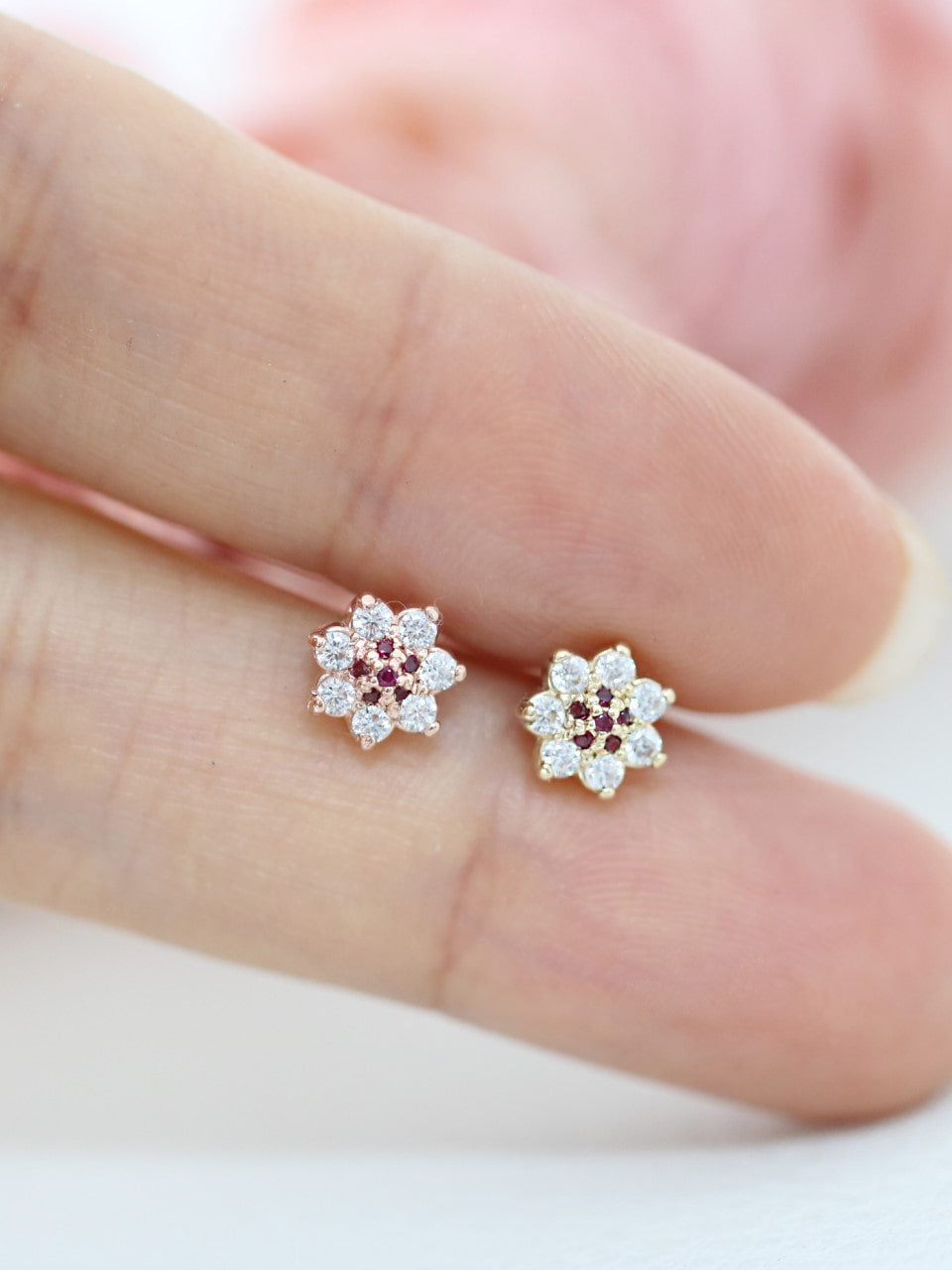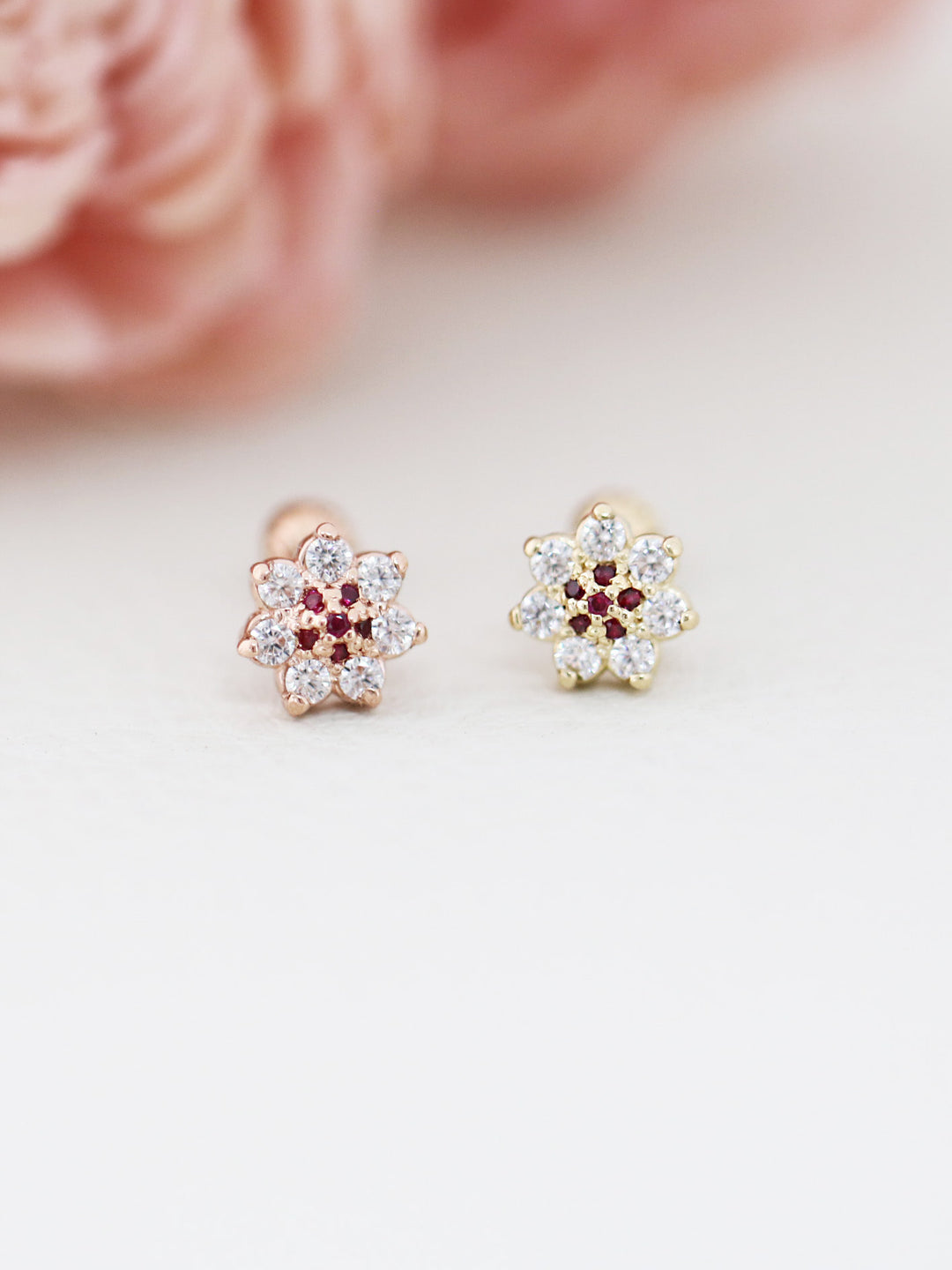 14K Gold Mini Colorful Flower Cartilage Earring 20G