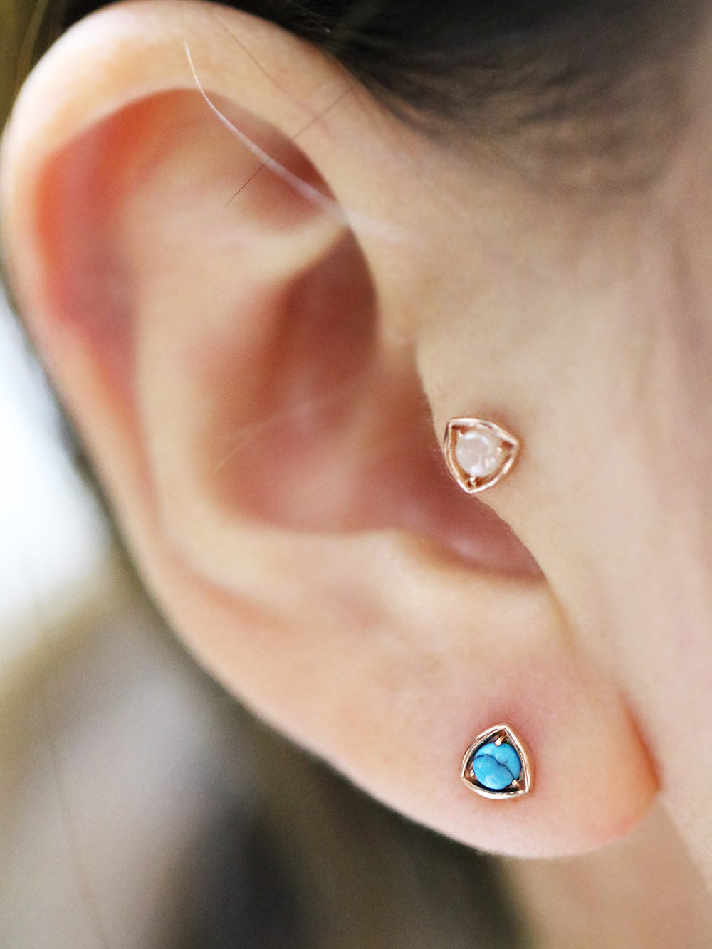 14K Gold Daily Natural Gemstone Cartilage Earring 20G18G16G