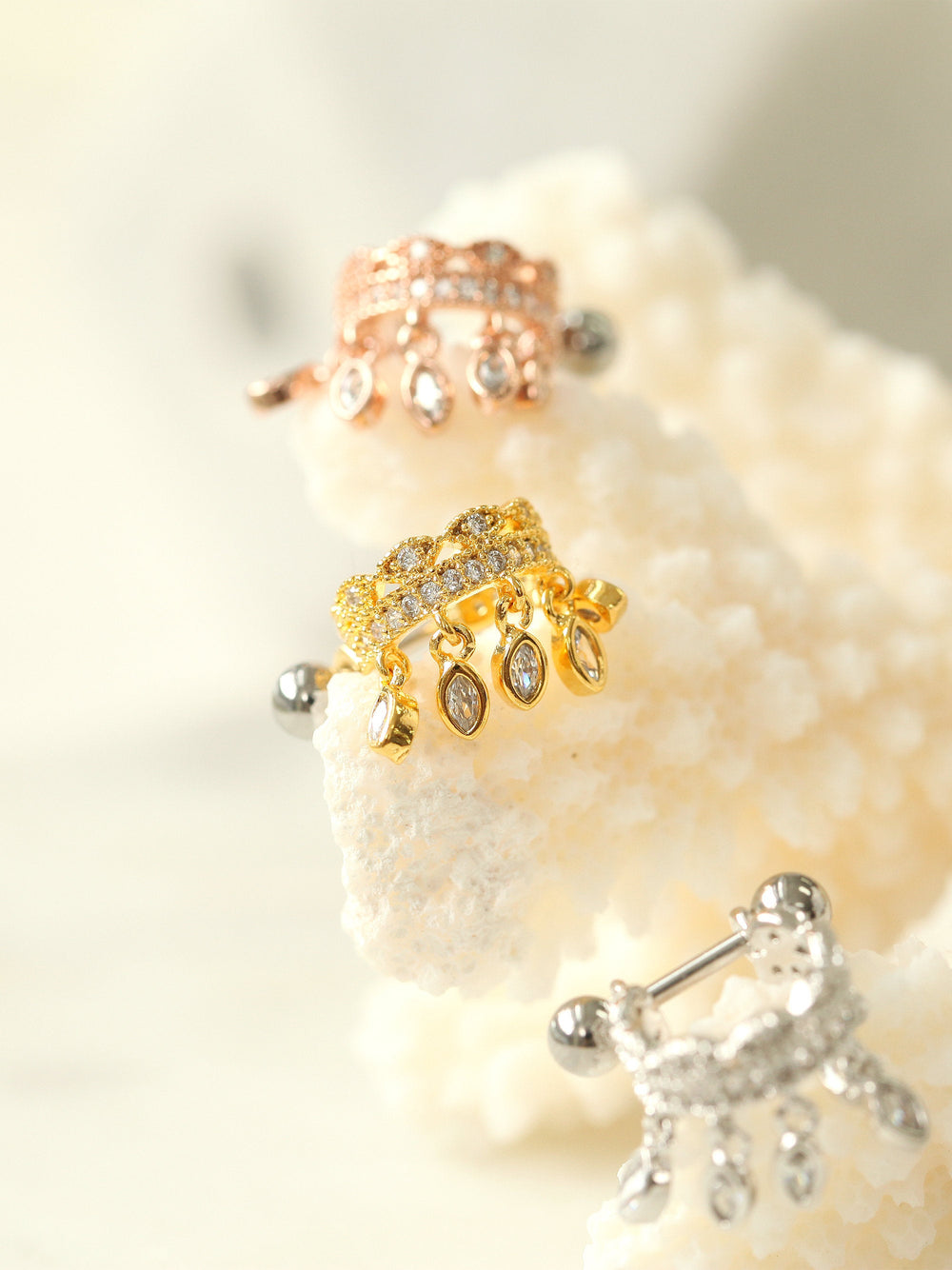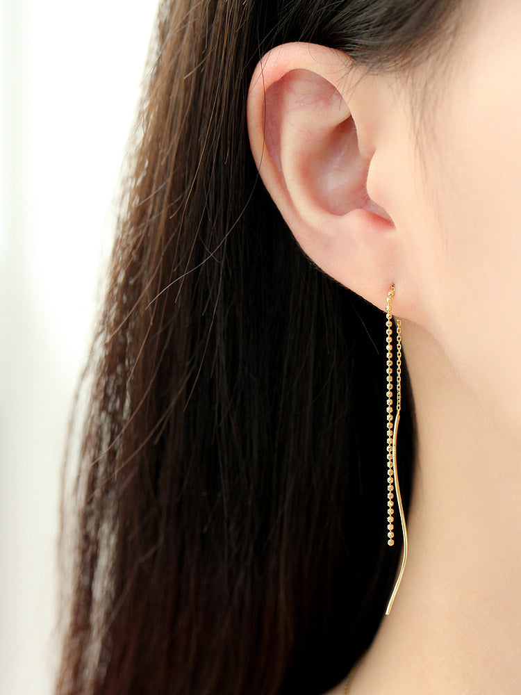 14K Gold Laurel Drop Chain Cartilage Earring 20G