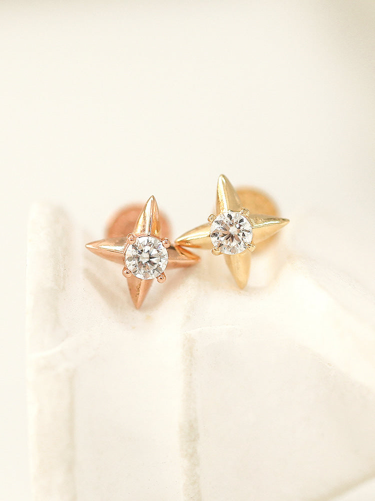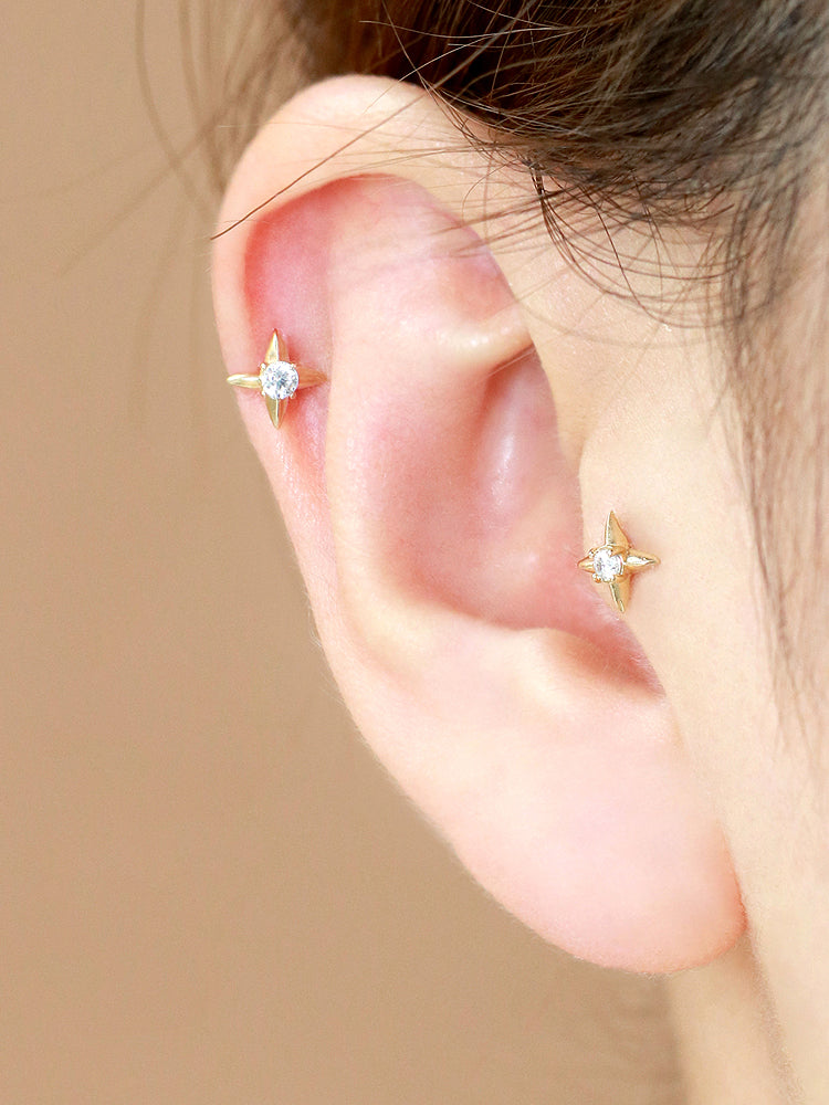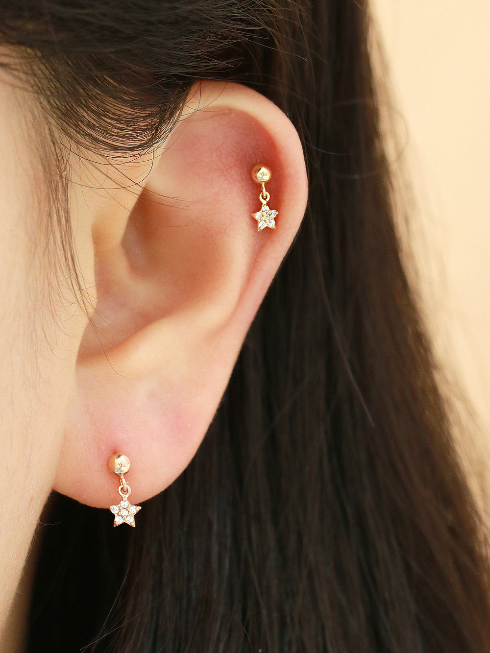 14K Gold Bling Cubic Star Cartilage Earring 20G18G