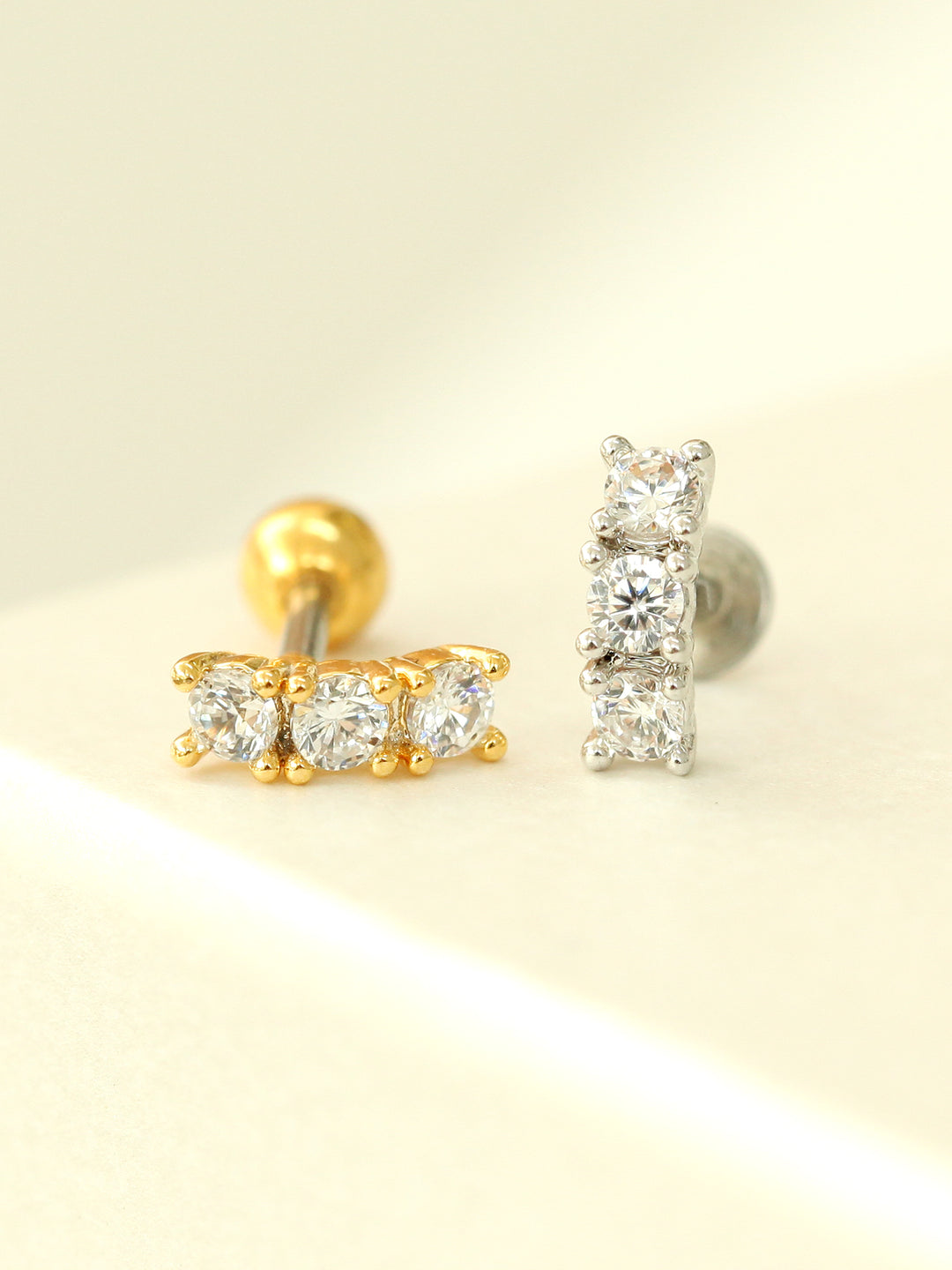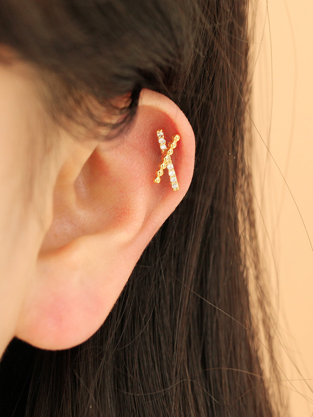14K Gold Bubble Cubic Stick Bar Cartilage Earring 20G18G16G