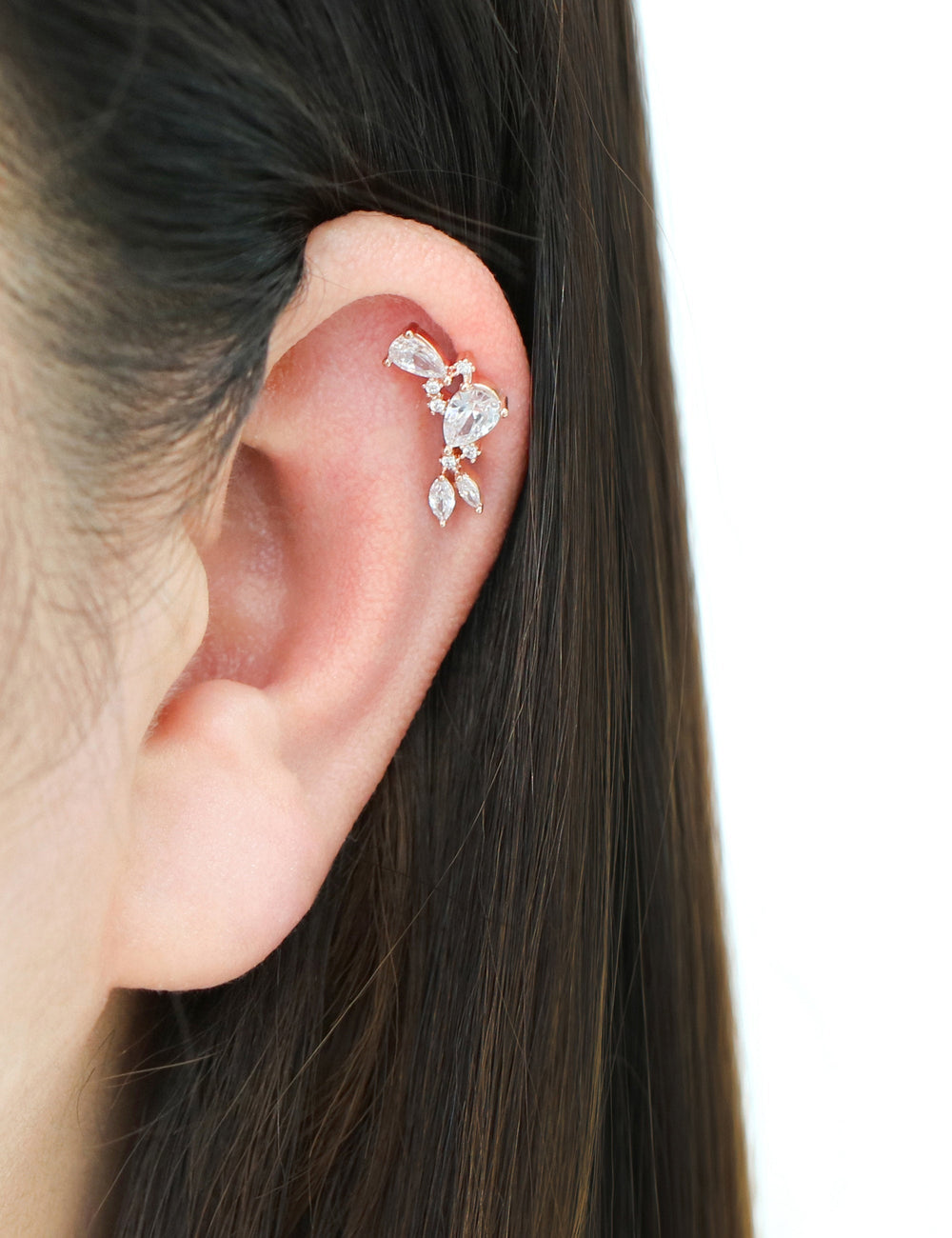 14K Gold Five Rose cut Cubic Cartilage Earring 20G18G